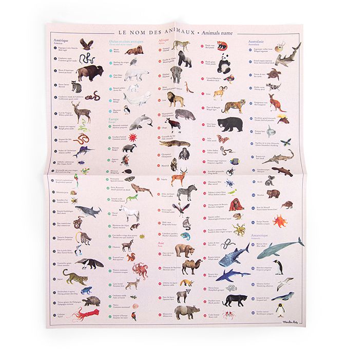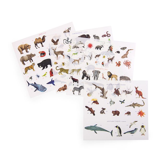 總共有107種動物的轉印貼紙和海報