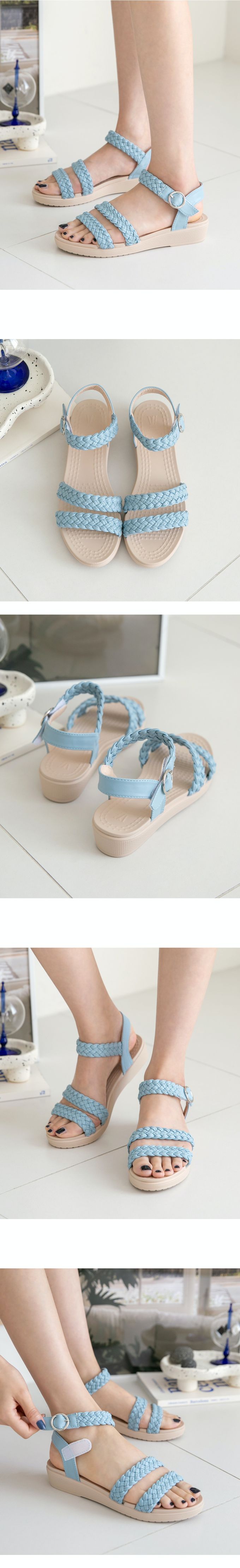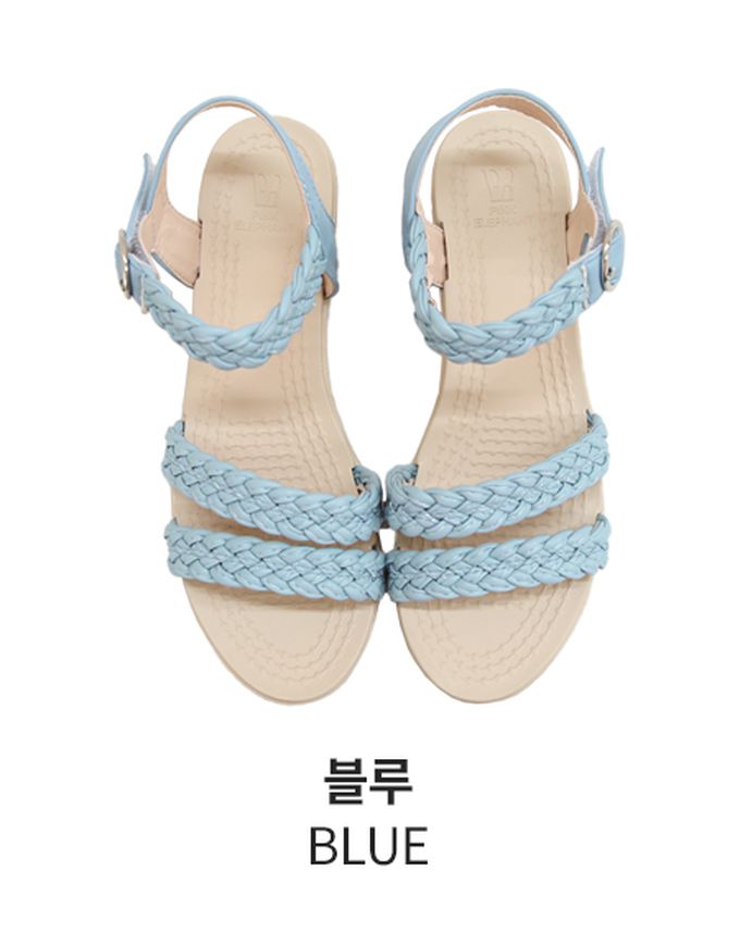 韓國 PINKELEPHANT - 防水編織帶輕量楔型涼鞋(3.5cm)-天藍