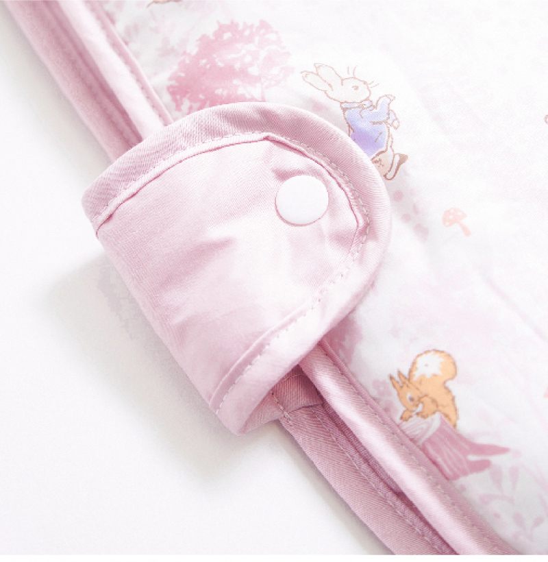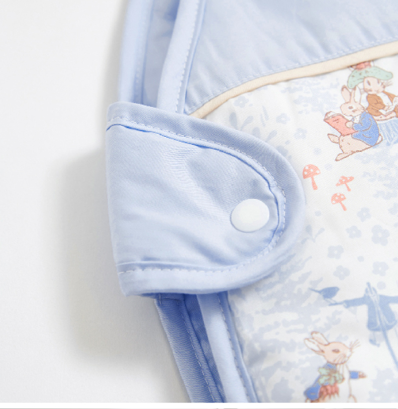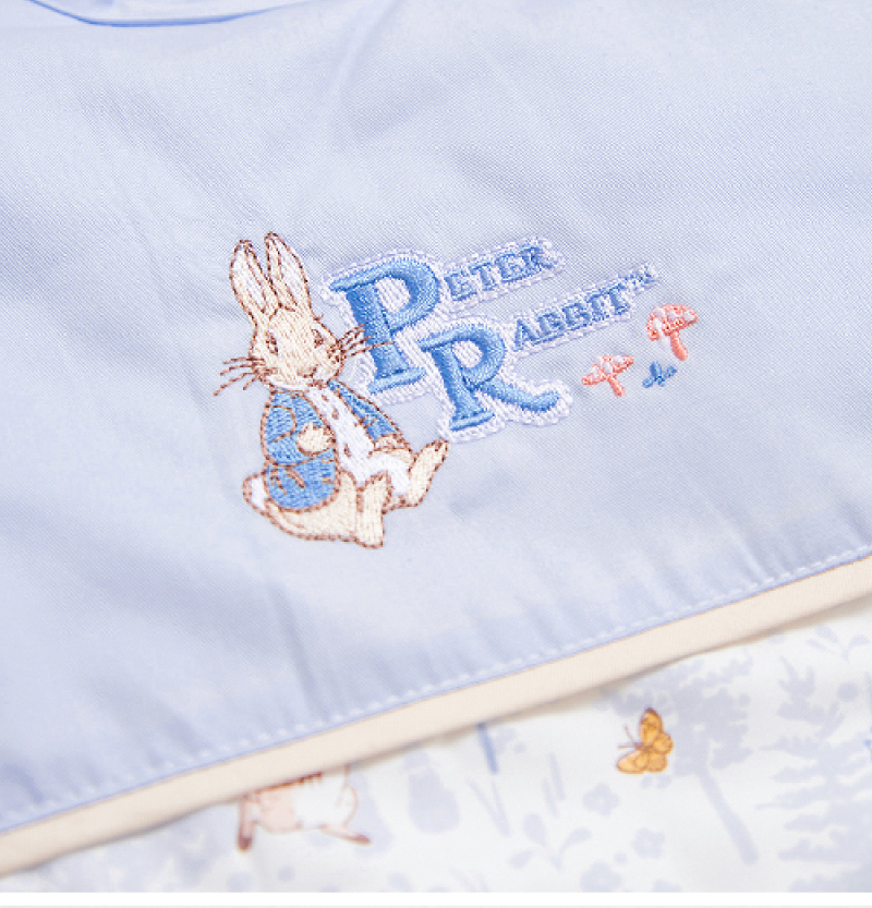 悅讀比得兔寢具系列為寶寶嚴選高密度精梳棉面料,搭配典雅圖紋設計,呈現活潑純真氣息,提供寶寶溫馨、舒適的睡眠環境。