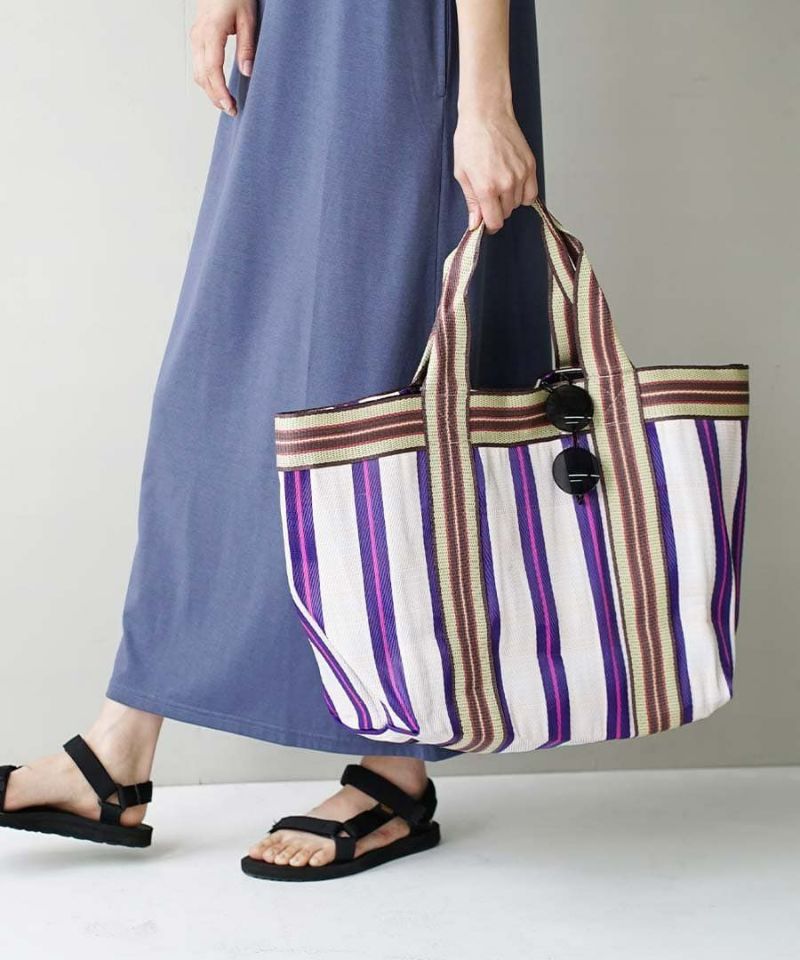 民族風條紋編織大容量手提包
