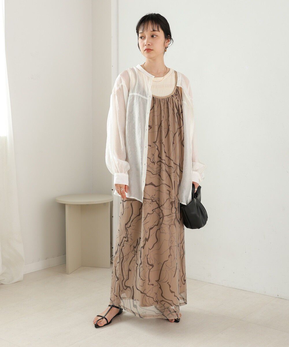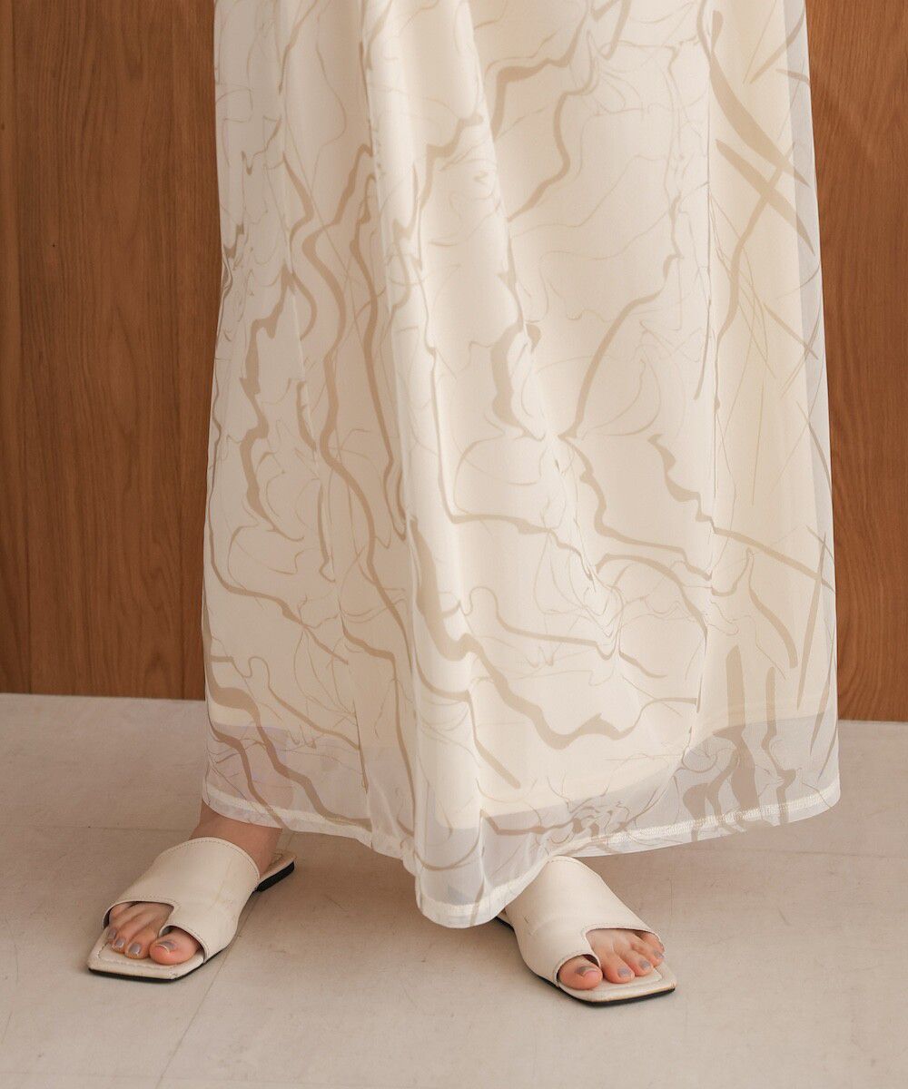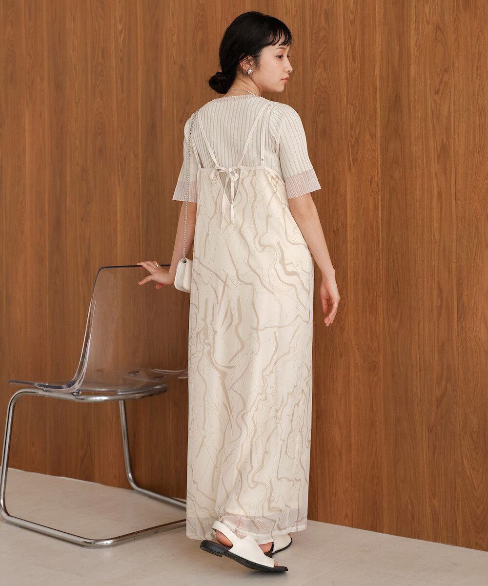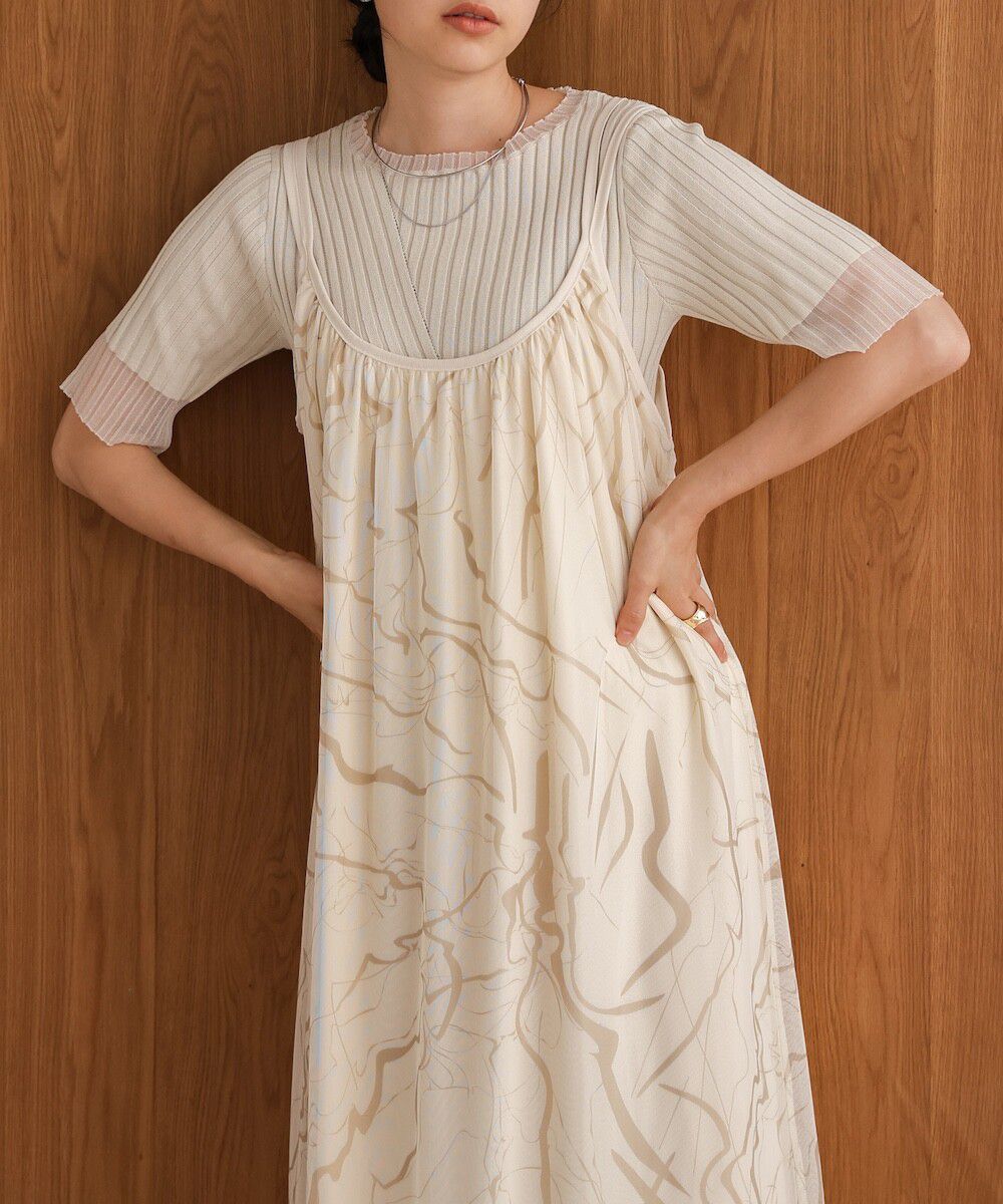 大理石印花雙層薄紗細肩帶洋裝
