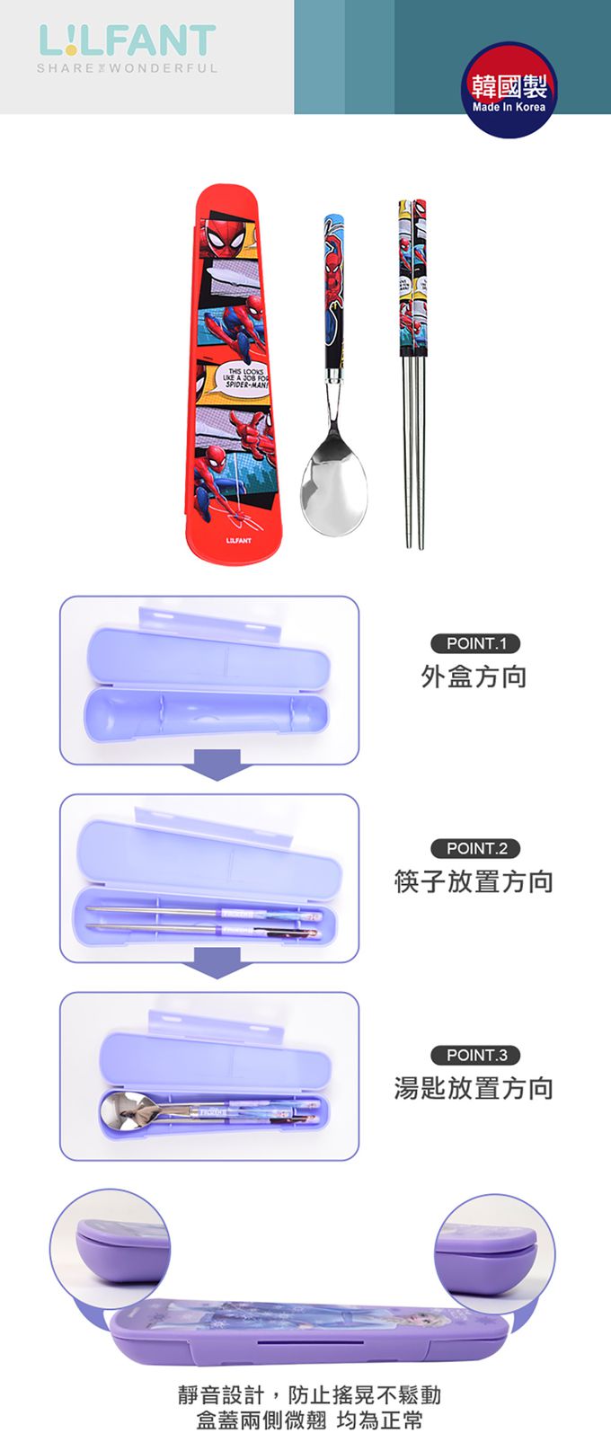 韓國 Lilfant - 不鏽鋼匙筷組(附盒)-蜘蛛人