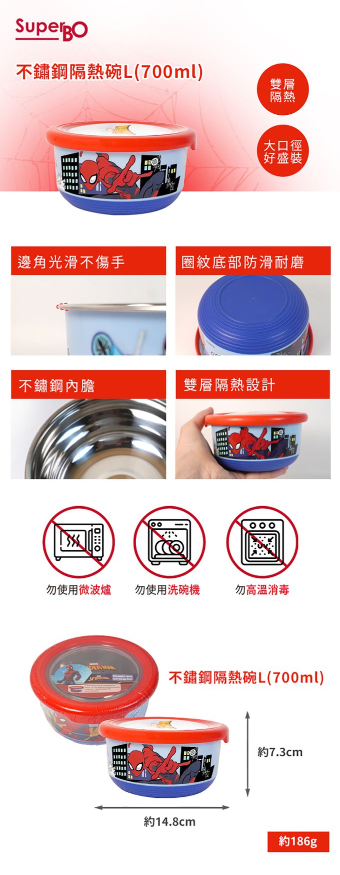 SuperBO - 不鏽鋼隔熱碗-L-蜘蛛人-700ml