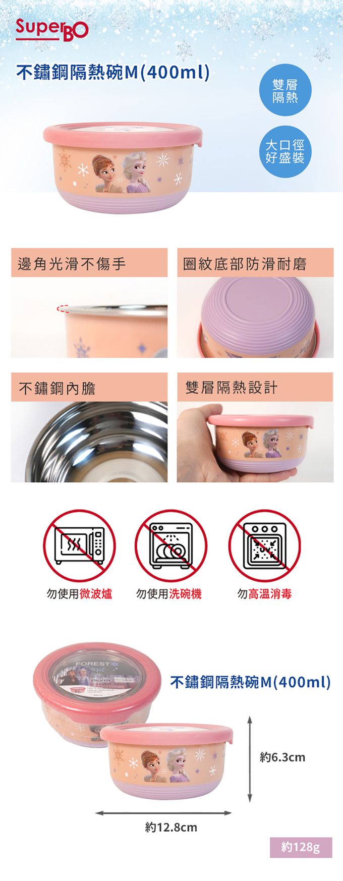 不鏽鋼隔熱碗-M-冰雪奇緣-400ml