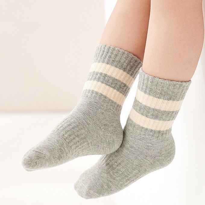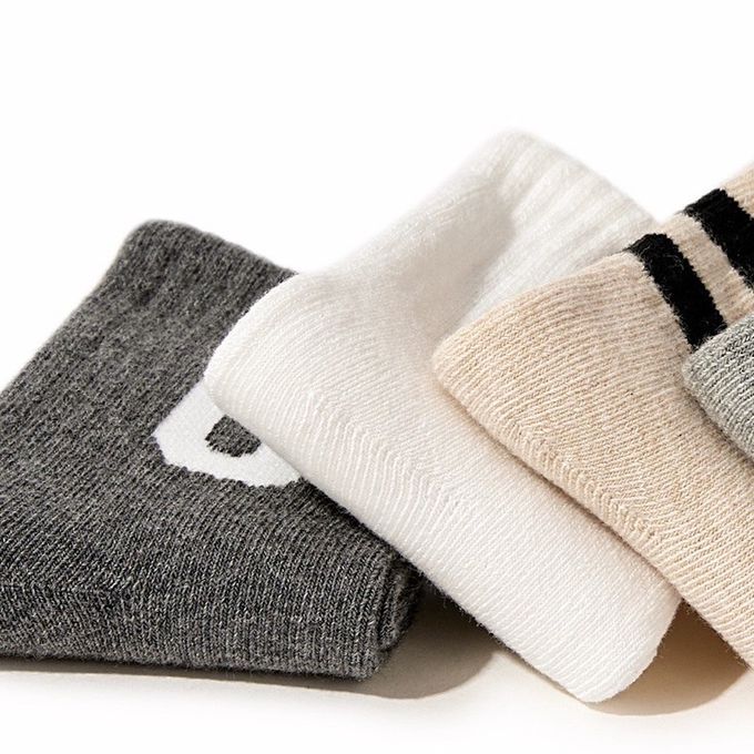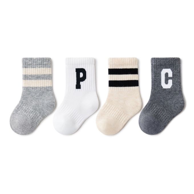 經典橫條字母短筒長纖棉襪-4 雙一組