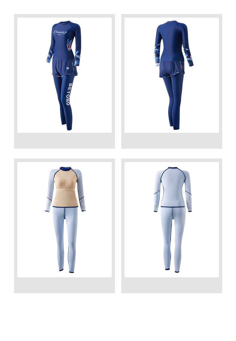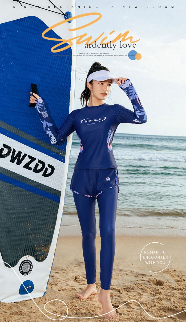 全方位防曬顯瘦長袖泳衣套裝(兩件組)/水母衣-深藍色