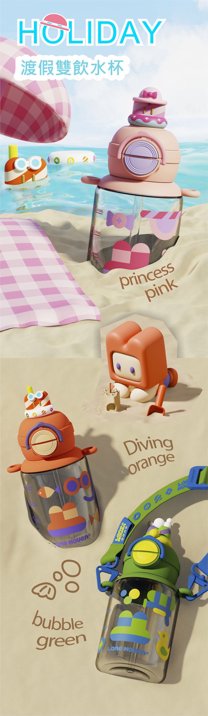 lane mouen - 渡假風雙飲水杯_Tritan-直飲&吸管雙飲 (粉_600ml)-600ml