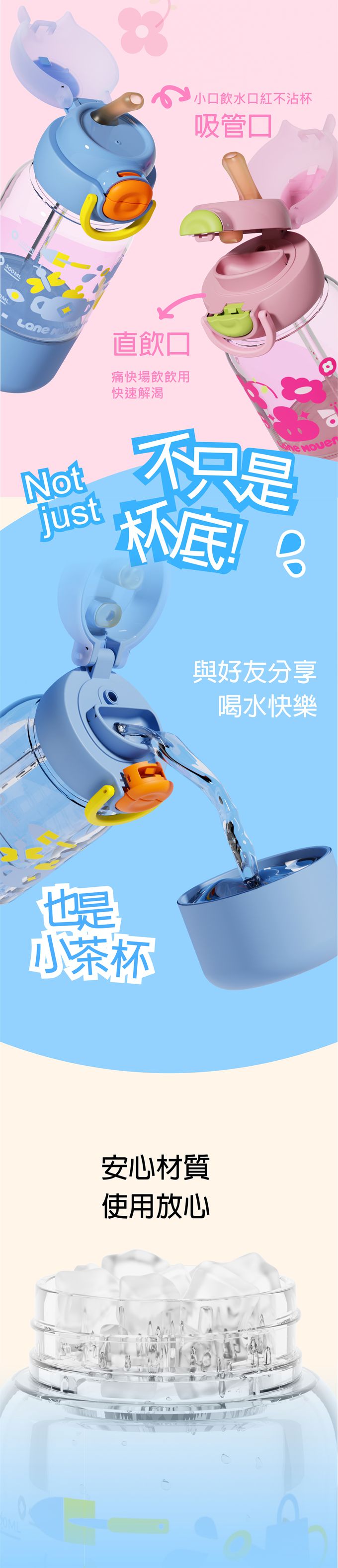材質:瓶身-tritan(改質PCT)、上蓋-聚丙烯、墊圈、吸管-矽膠