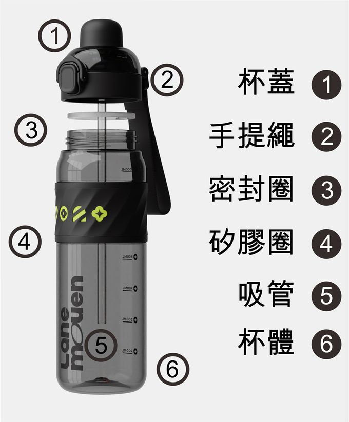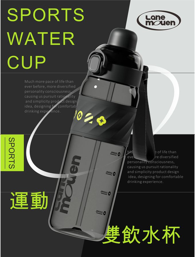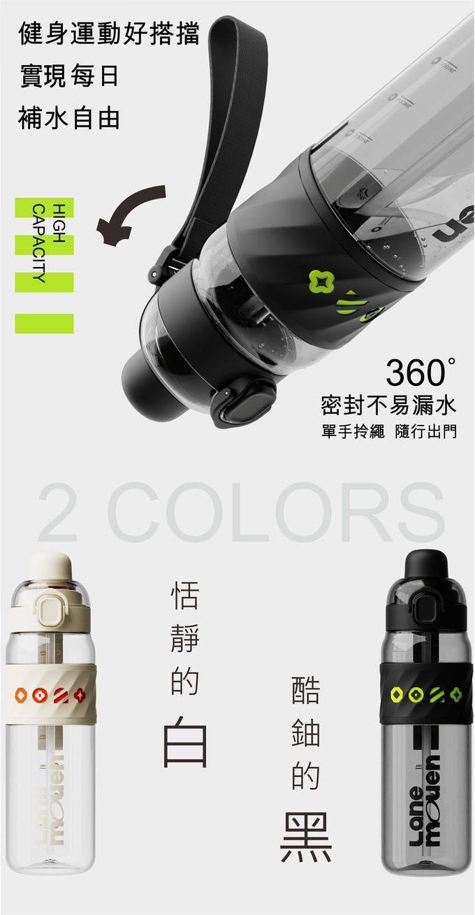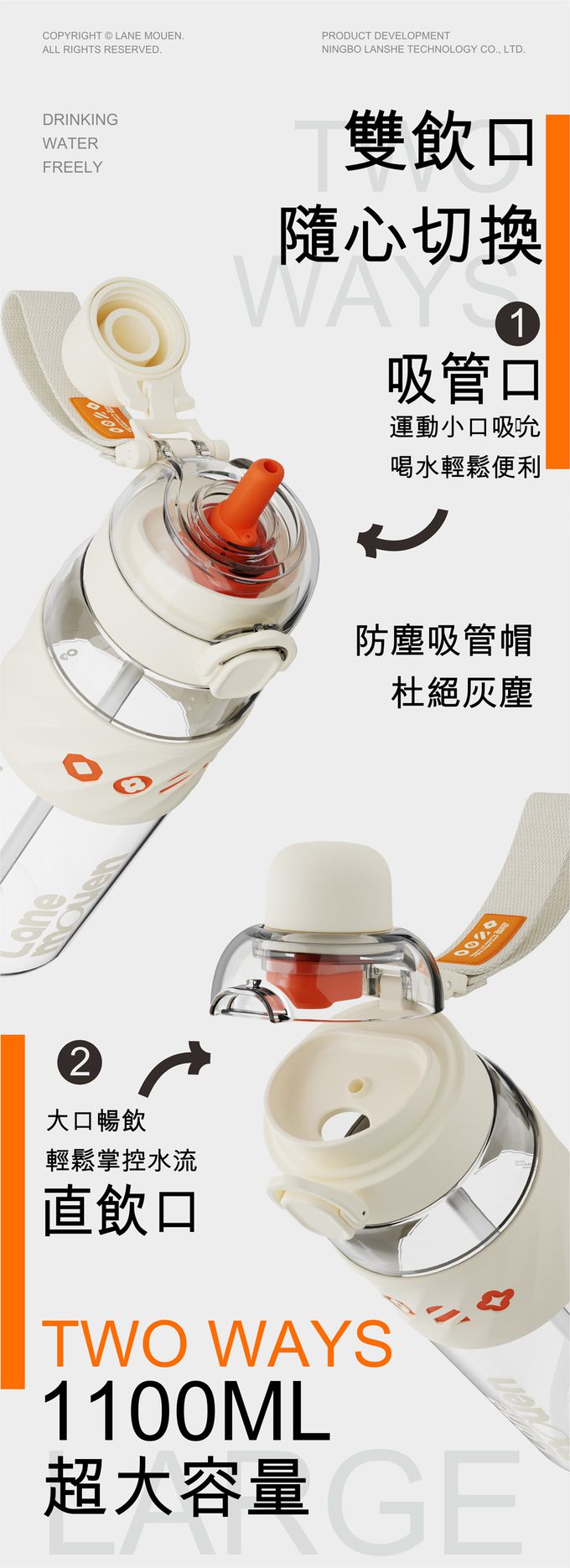 lane mouen - 運動雙飲水壺_Tritan-直飲&吸管雙飲 (白_1000ml)-1000ml
