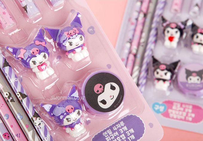 韓國 Alpha 連線 - 卡通鉛筆配件套組(內容物共11個)-卡通人物庫洛米-顏色隨機出貨 (12.5x23cm)