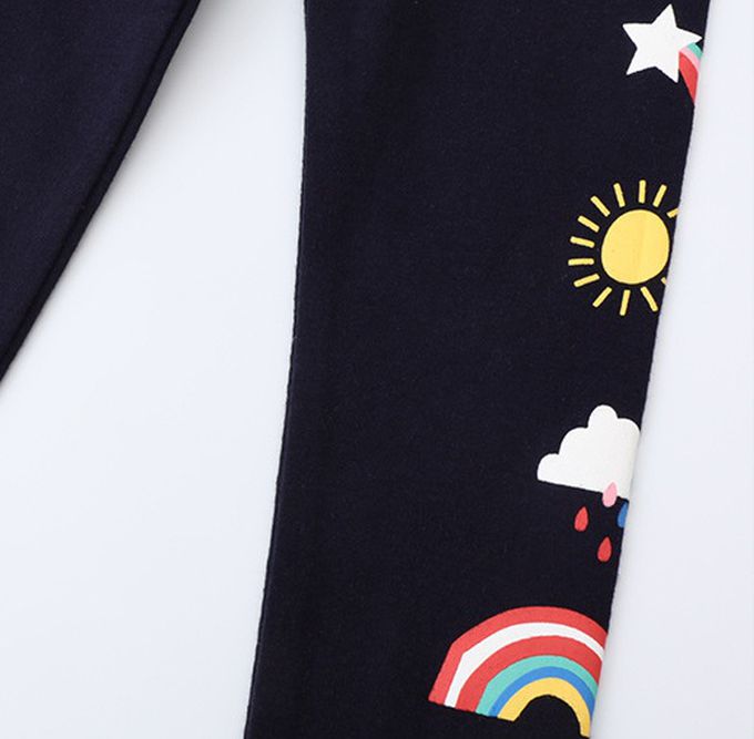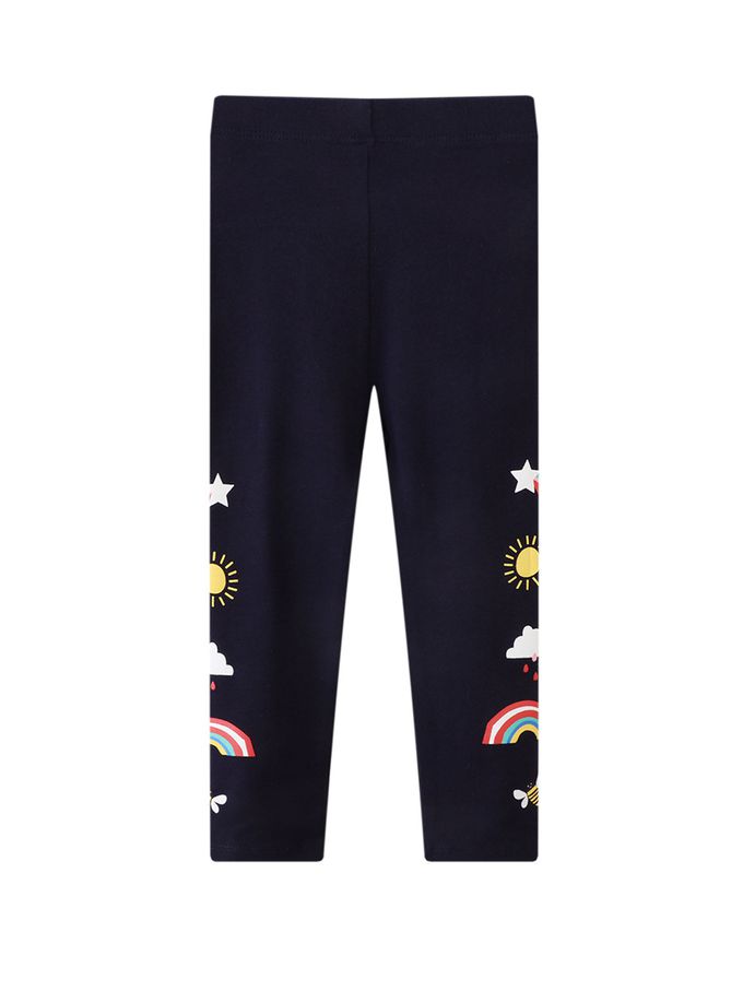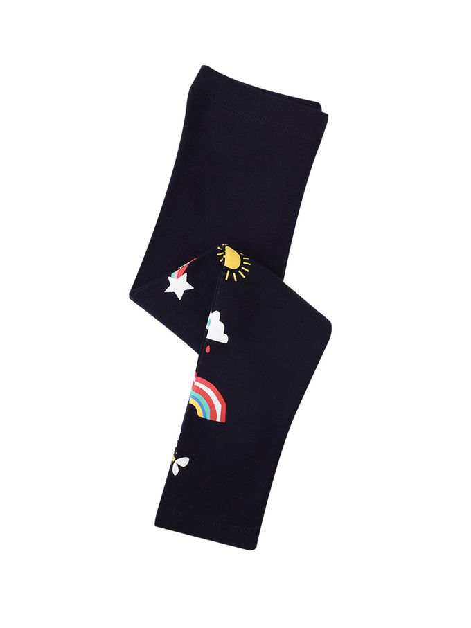 Jumping meters - 休閒腰鬆緊內搭褲-獨角獸彩虹-深藍色
