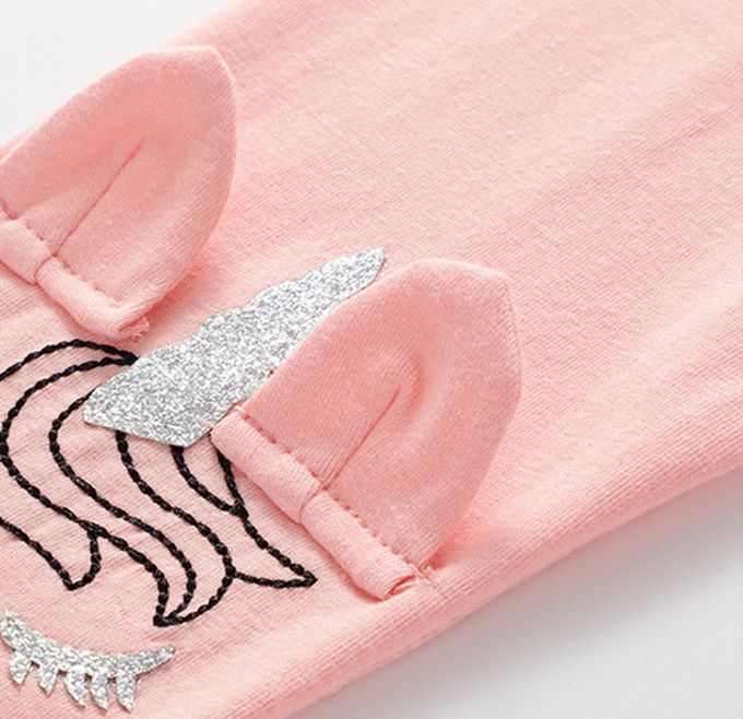 Jumping meters - 休閒腰鬆緊內搭褲-跳躍獨角獸-粉色