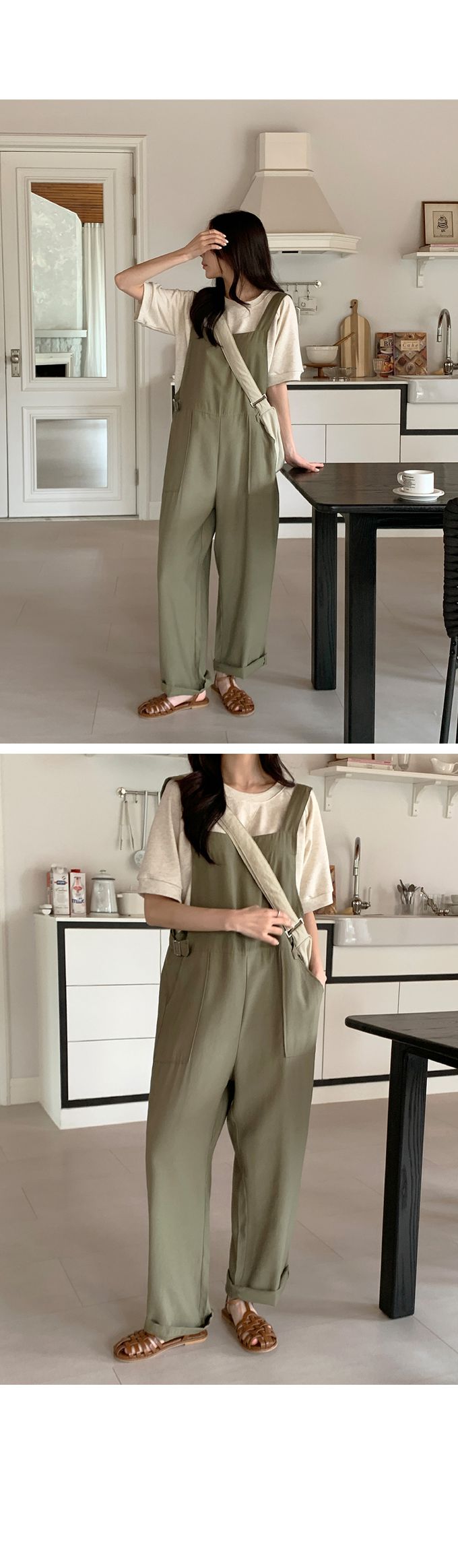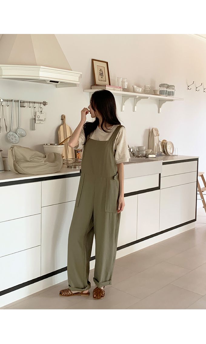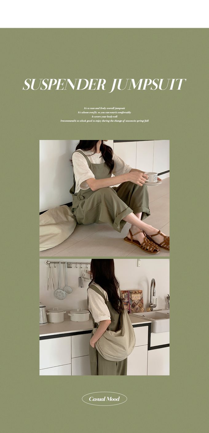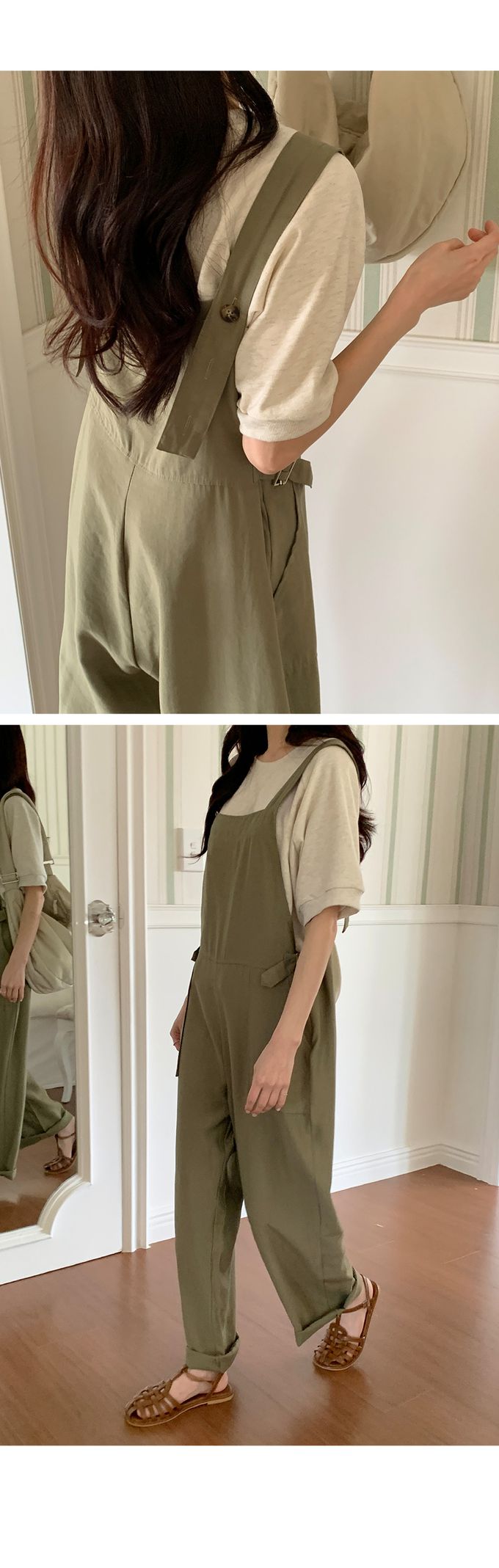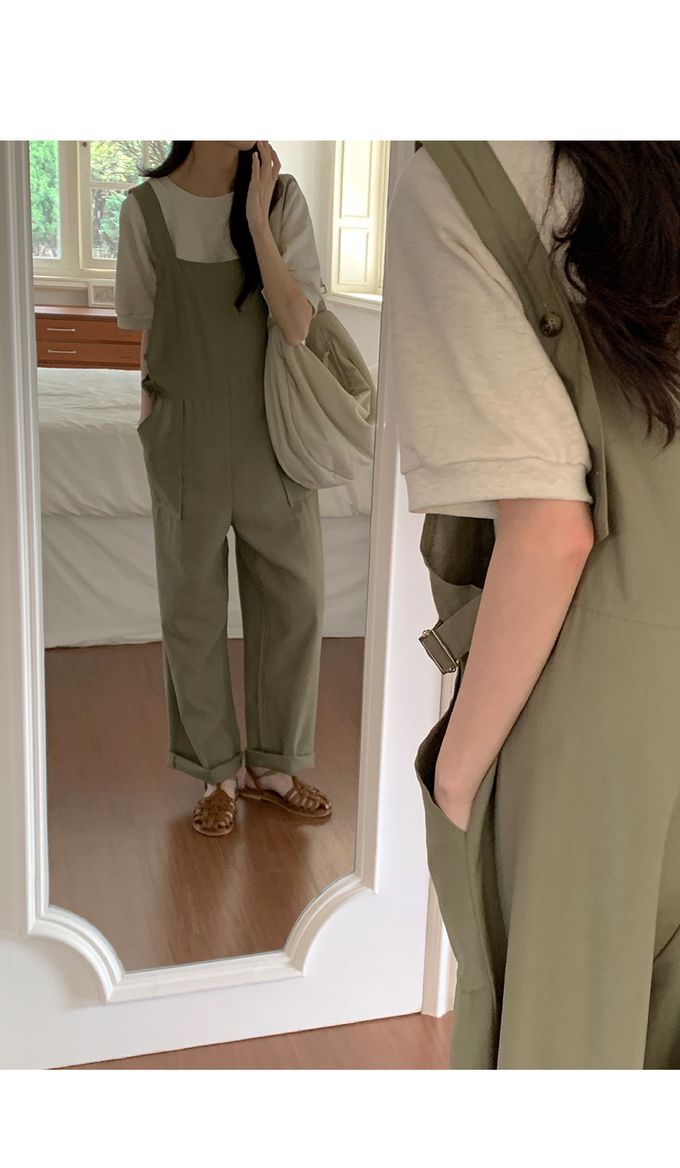 韓國 Urbantheroom - 肩帶可調連身工裝吊帶褲-軍綠 (FREE)