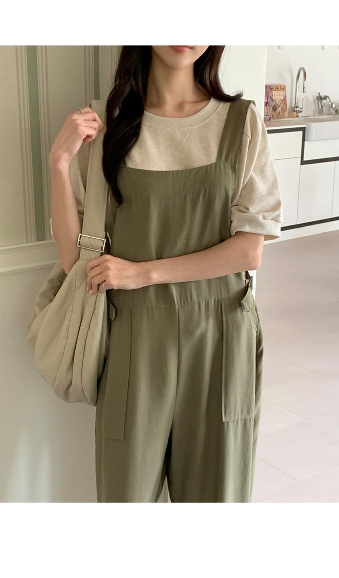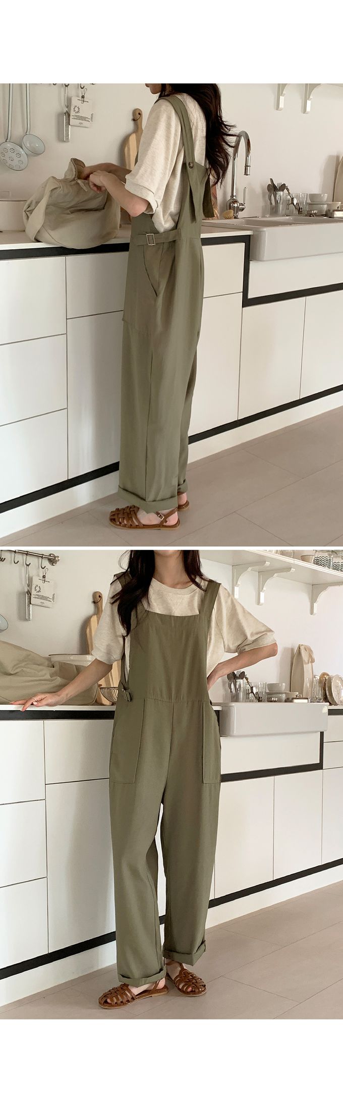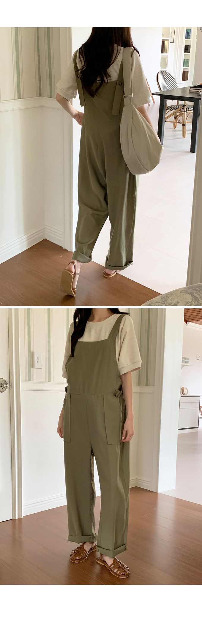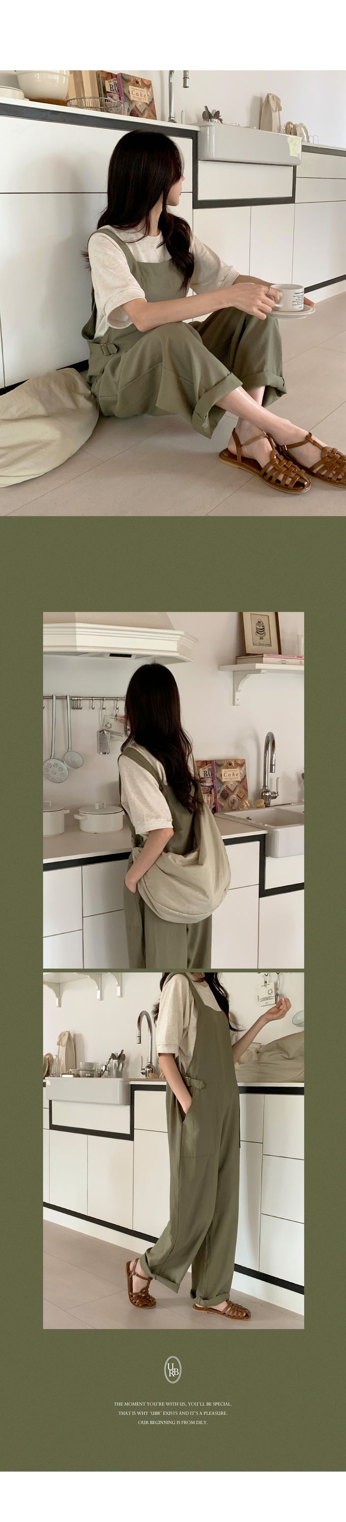 韓國 Urbantheroom - 肩帶可調連身工裝吊帶褲-軍綠 (FREE)