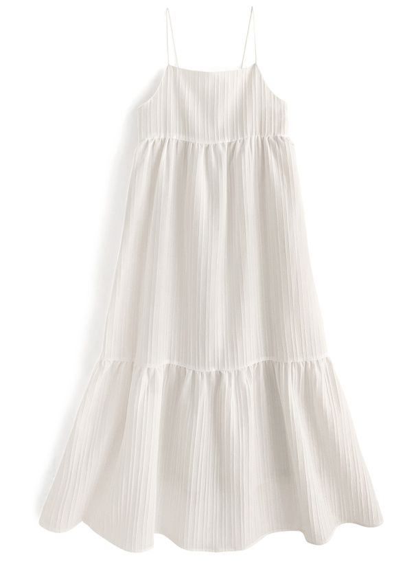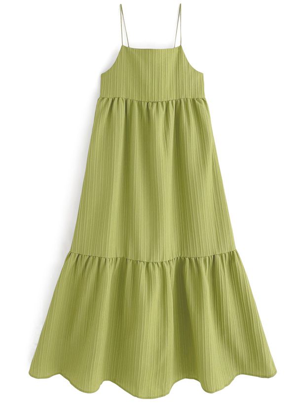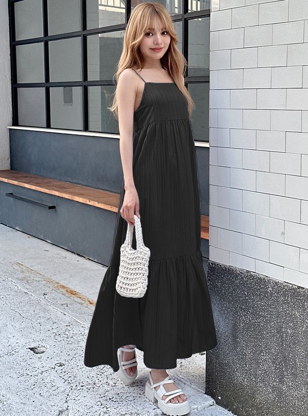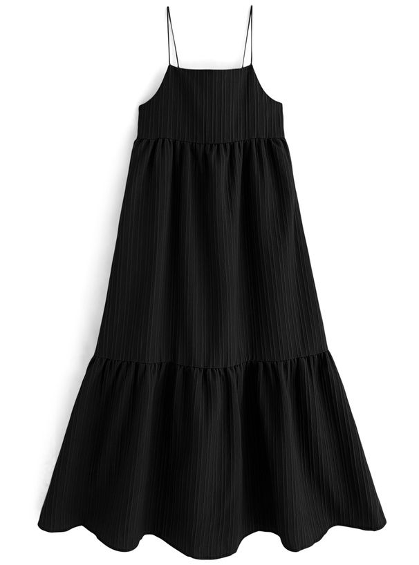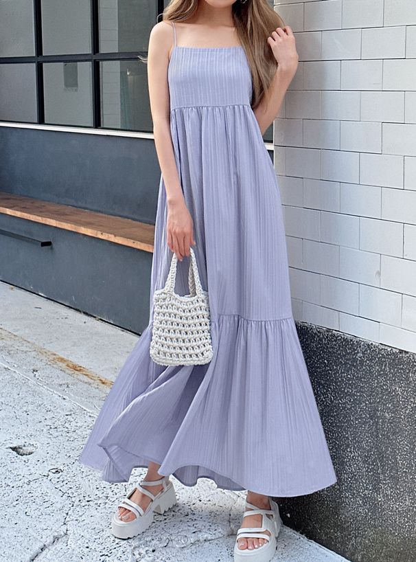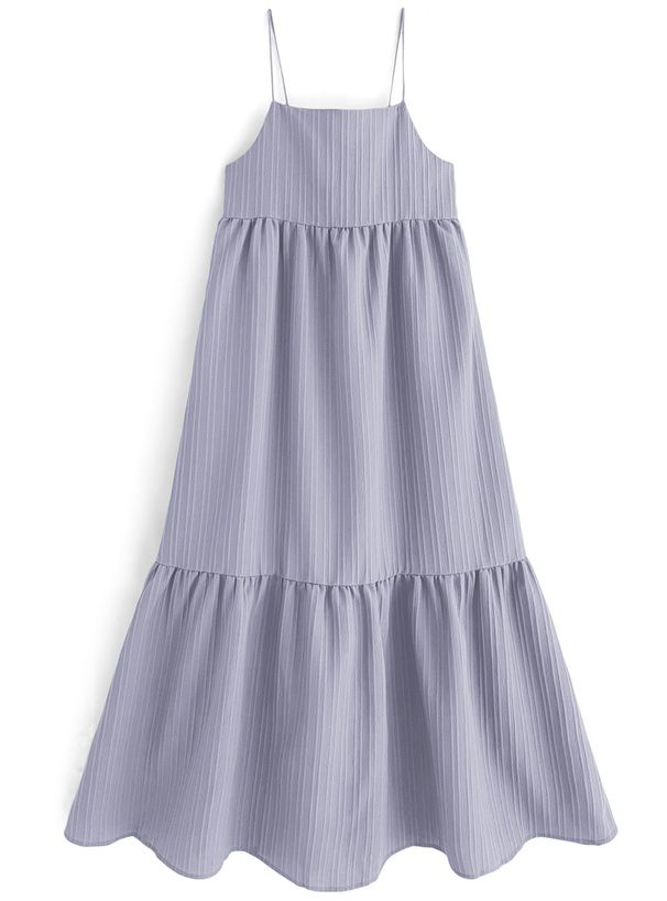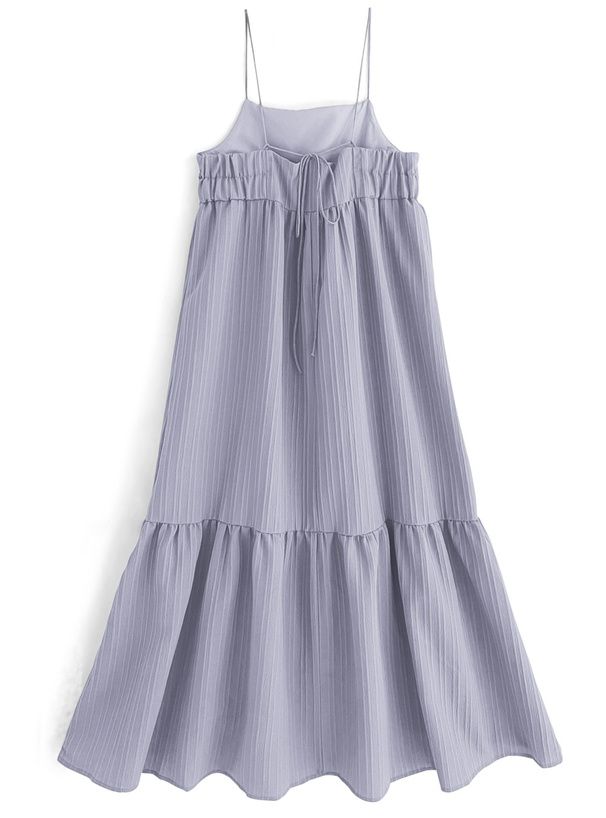 立體條紋飄逸細肩帶洋裝