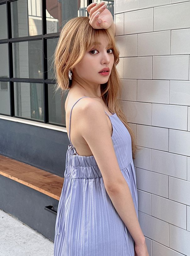 ![日本 GRL - 優雅抓皺泡泡布吊帶裙-米杏]()