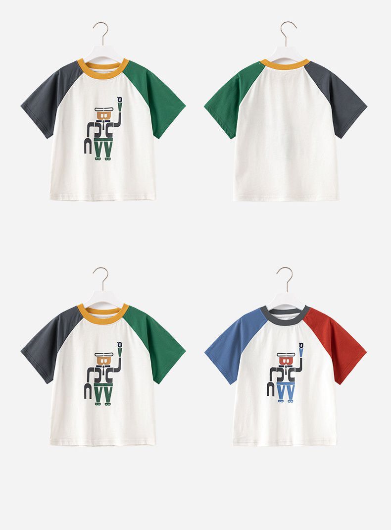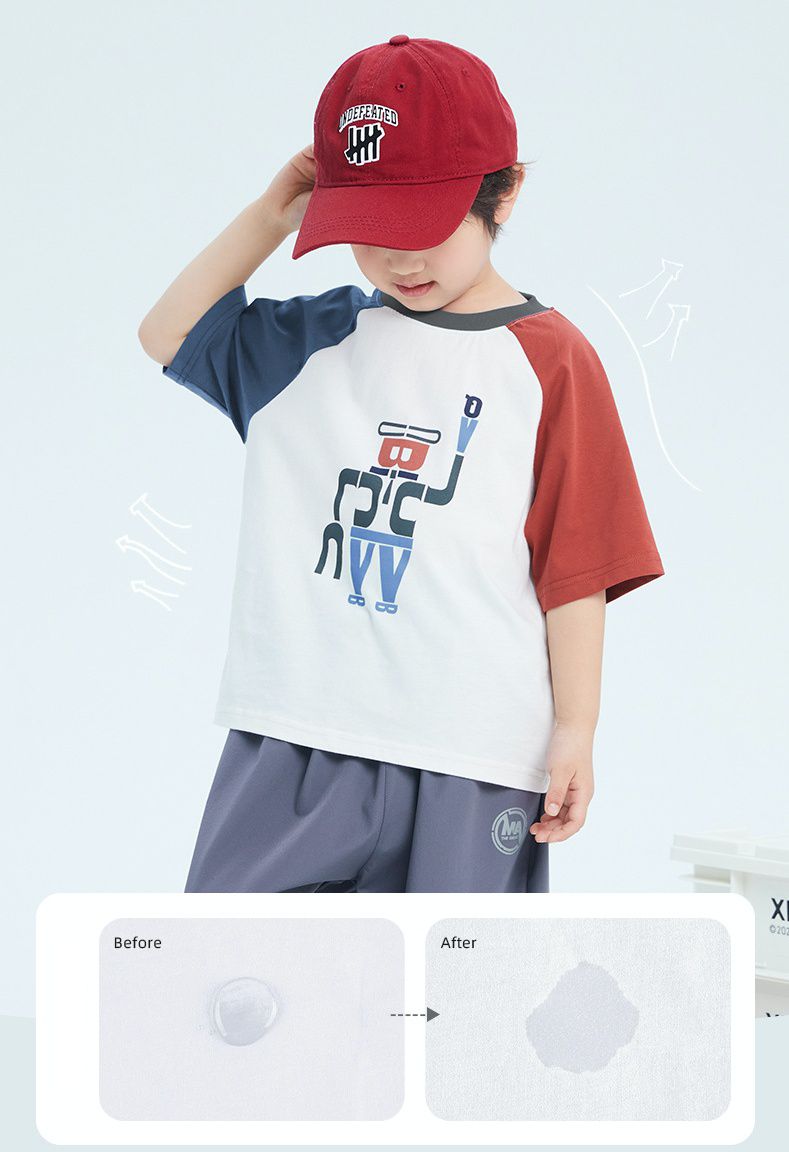 涼感吸濕透氣圓領短袖上衣-機器人印花-紅+藍