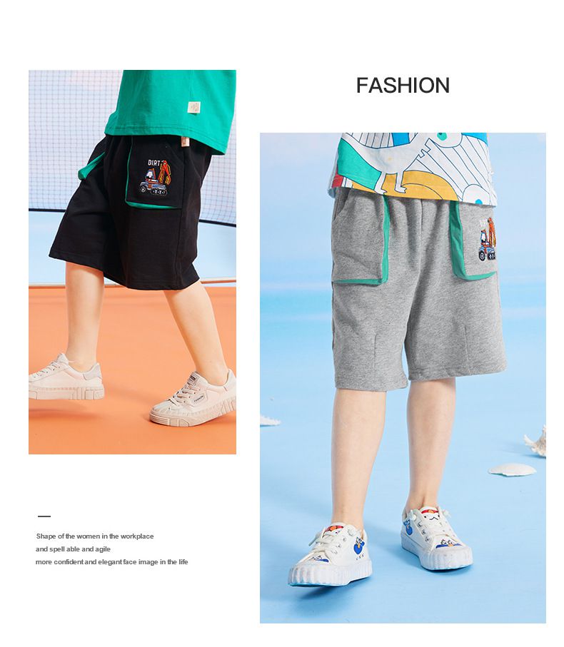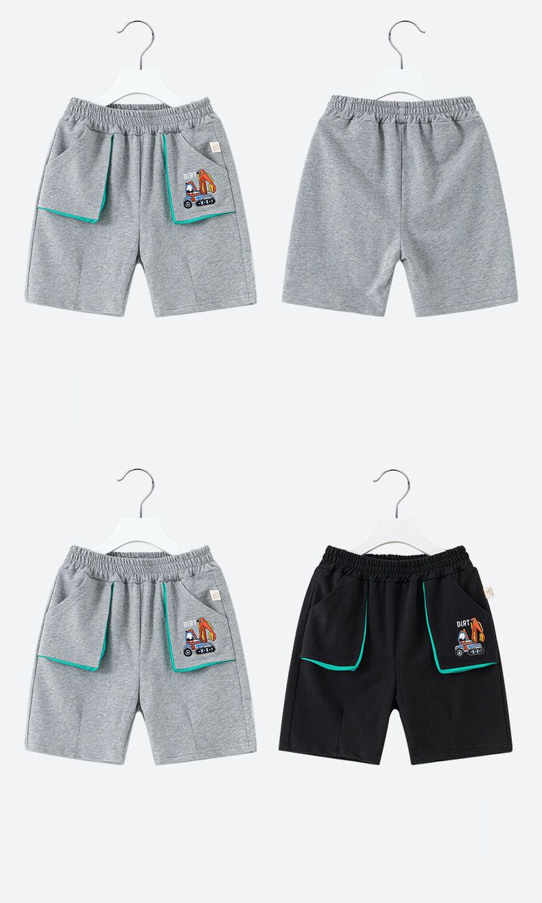 純棉休閒運動五分褲-挖土機-黑色
