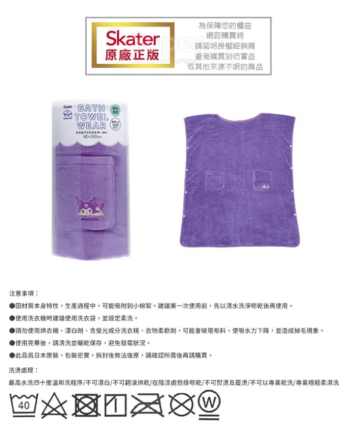 日本 SKATER - 親膚速乾毛巾衣-酷洛米