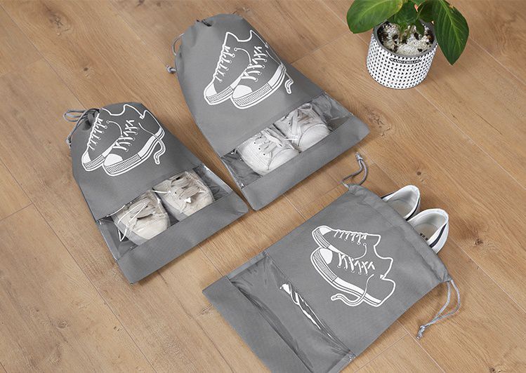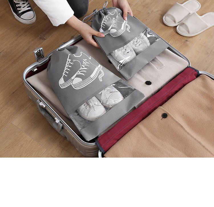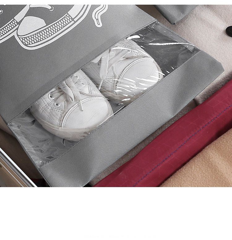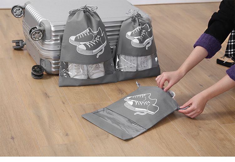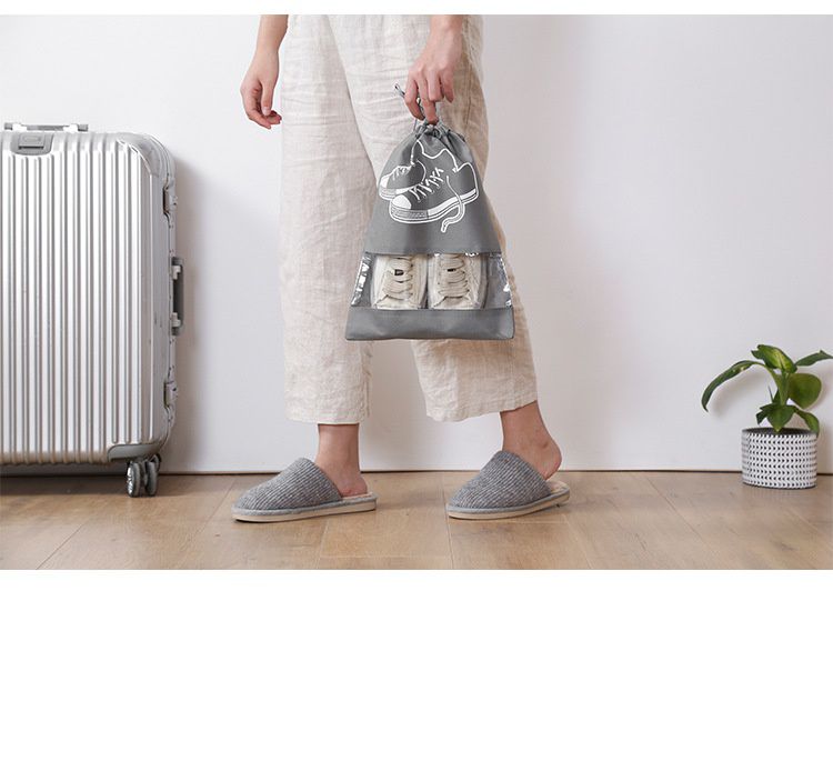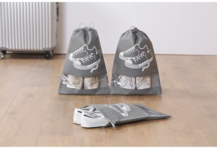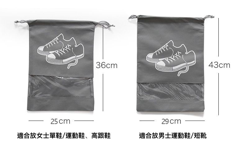超便利透視設計加厚束口收納袋-鞋子印刷-灰色-大號43X29cm
