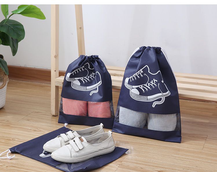 超便利透視設計加厚束口收納袋-鞋子印刷-藏青-大號43X29cm