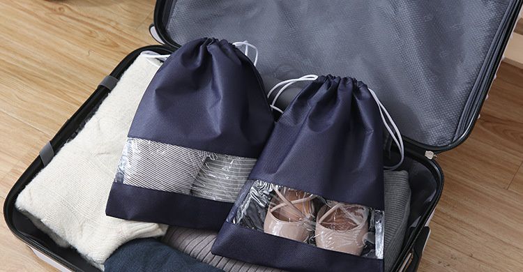 超便利透視設計加厚束口收納袋-藏青-中號36X25cm