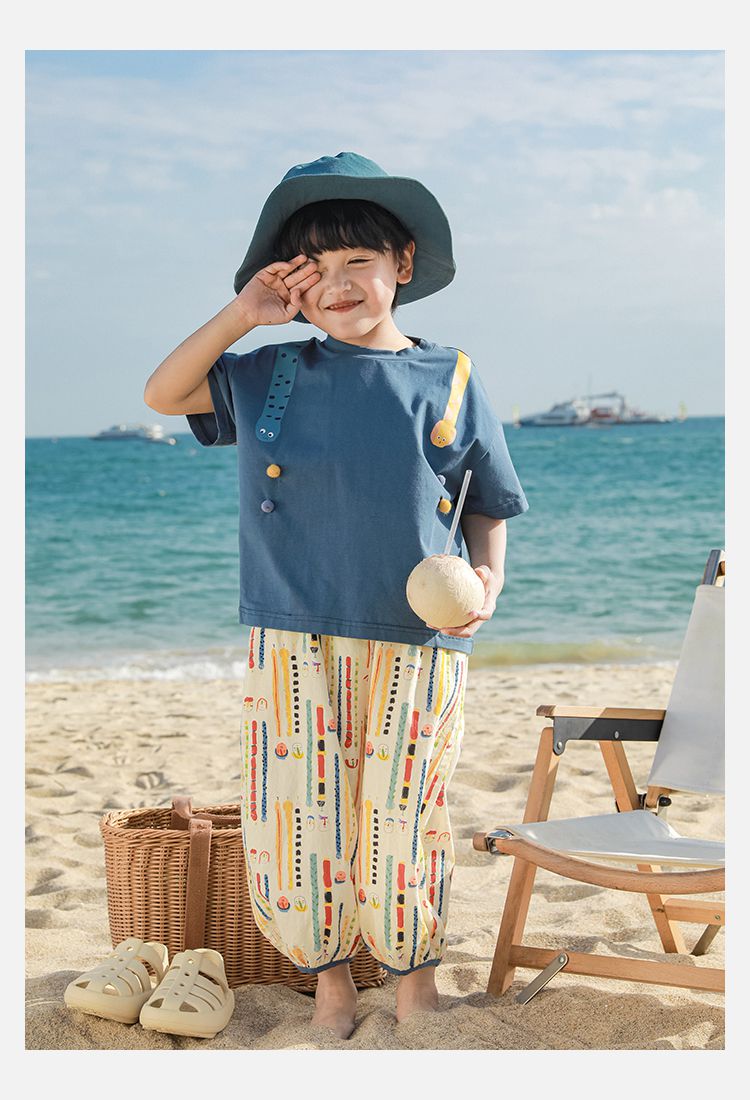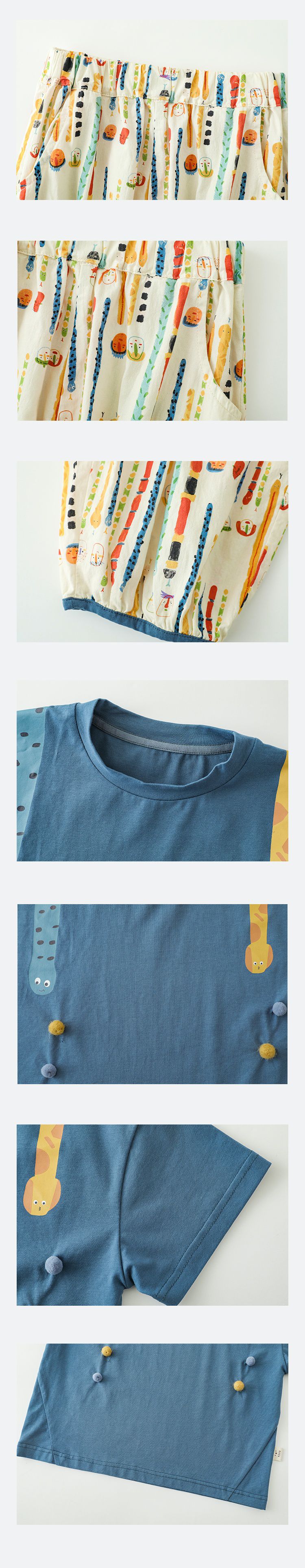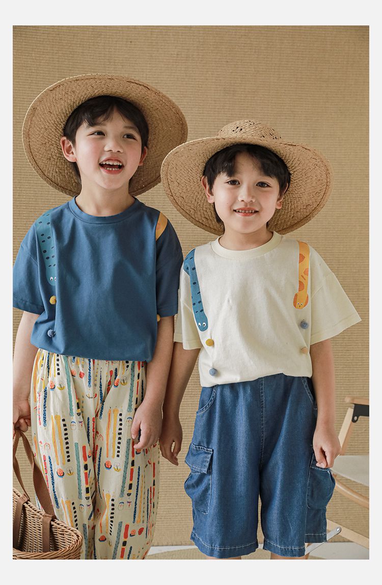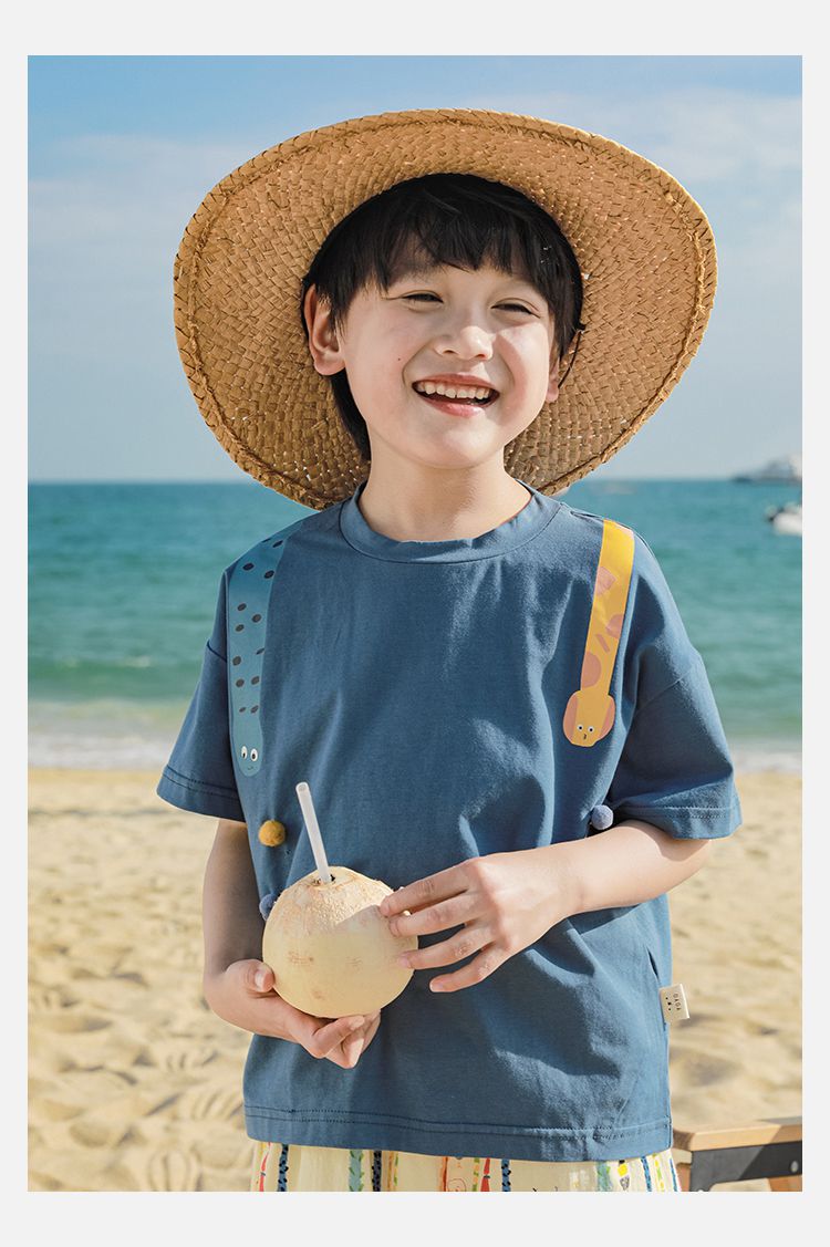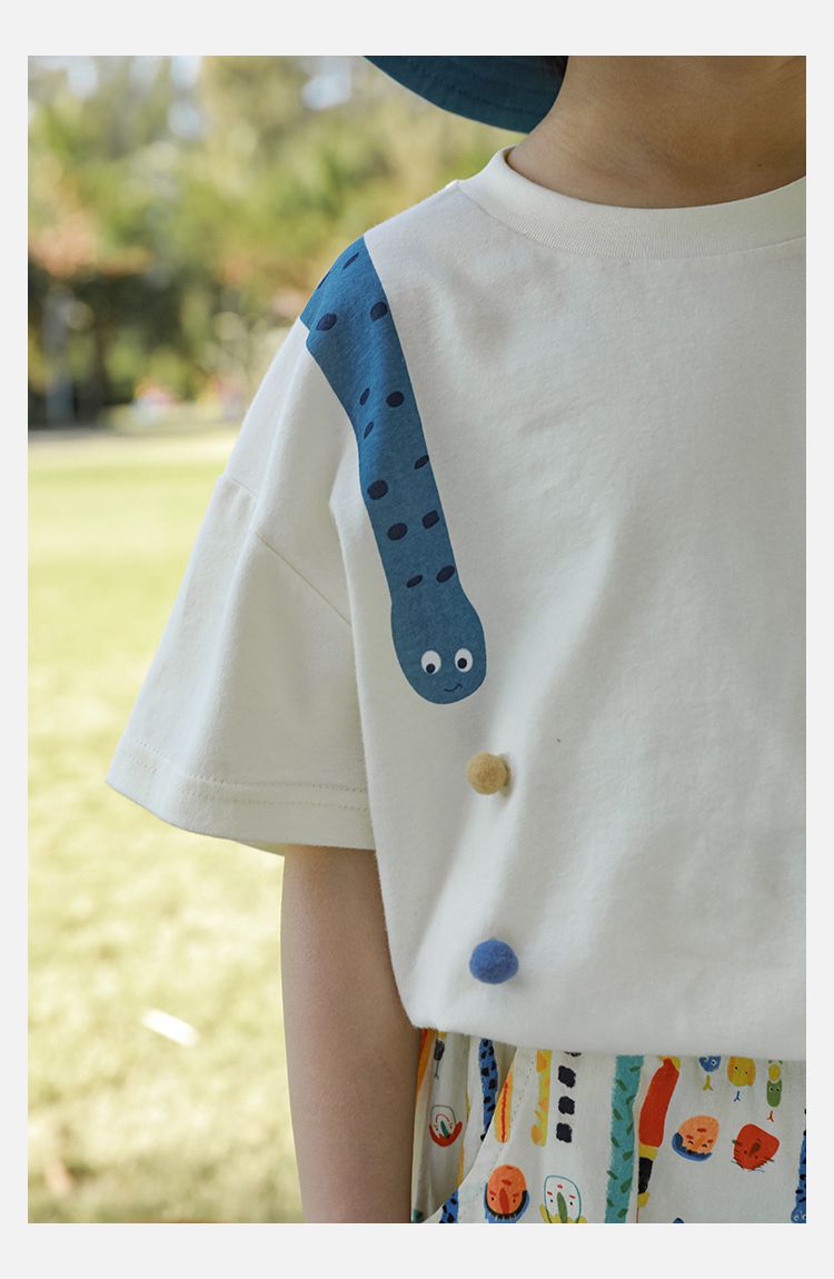 TONGMO - 休閒圓領短袖上衣-貪食蛇大戰-藍色