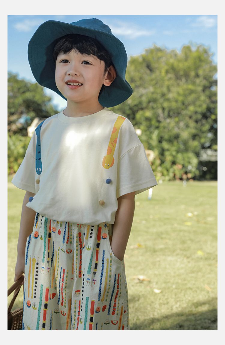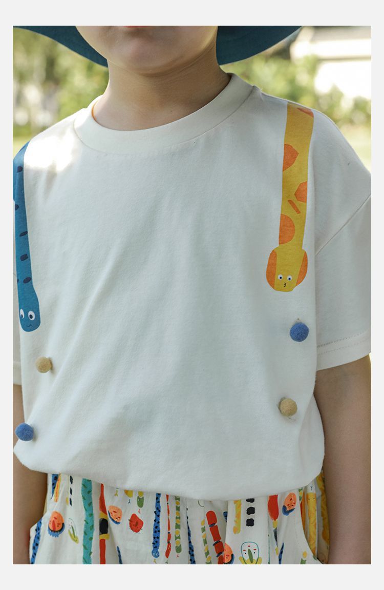 休閒圓領短袖上衣-貪食蛇大戰-米色