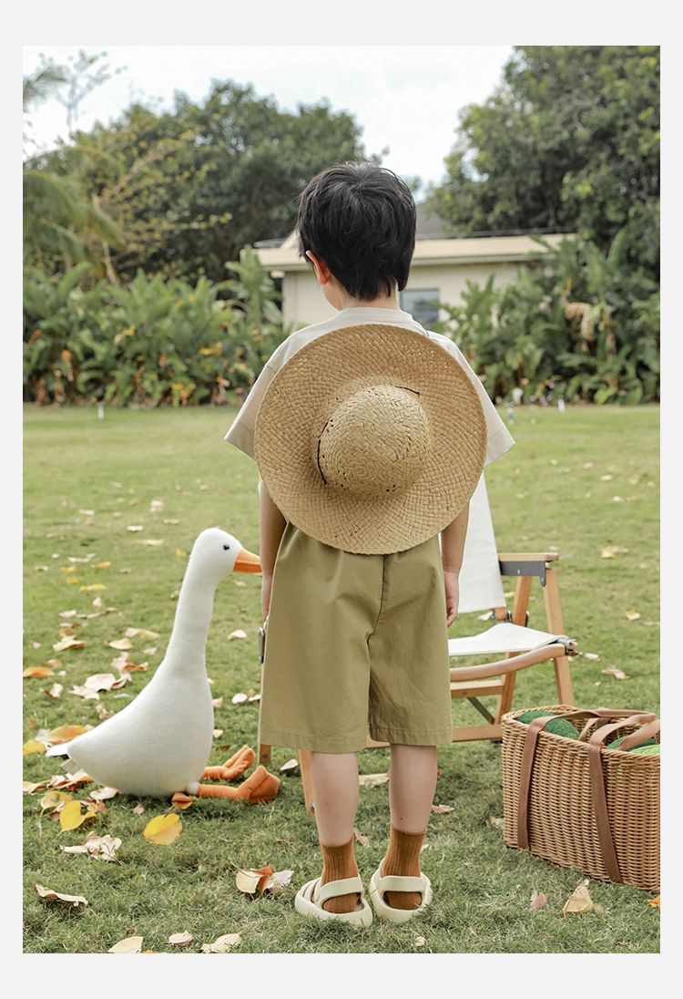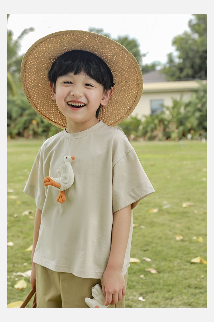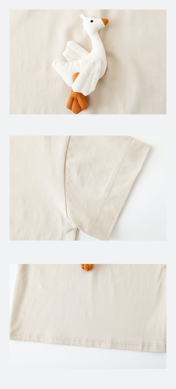 休閒圓領短袖上衣-大鵝玩偶-灰杏色