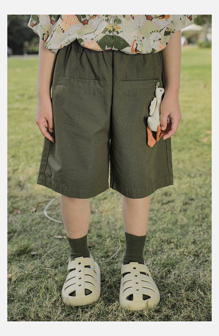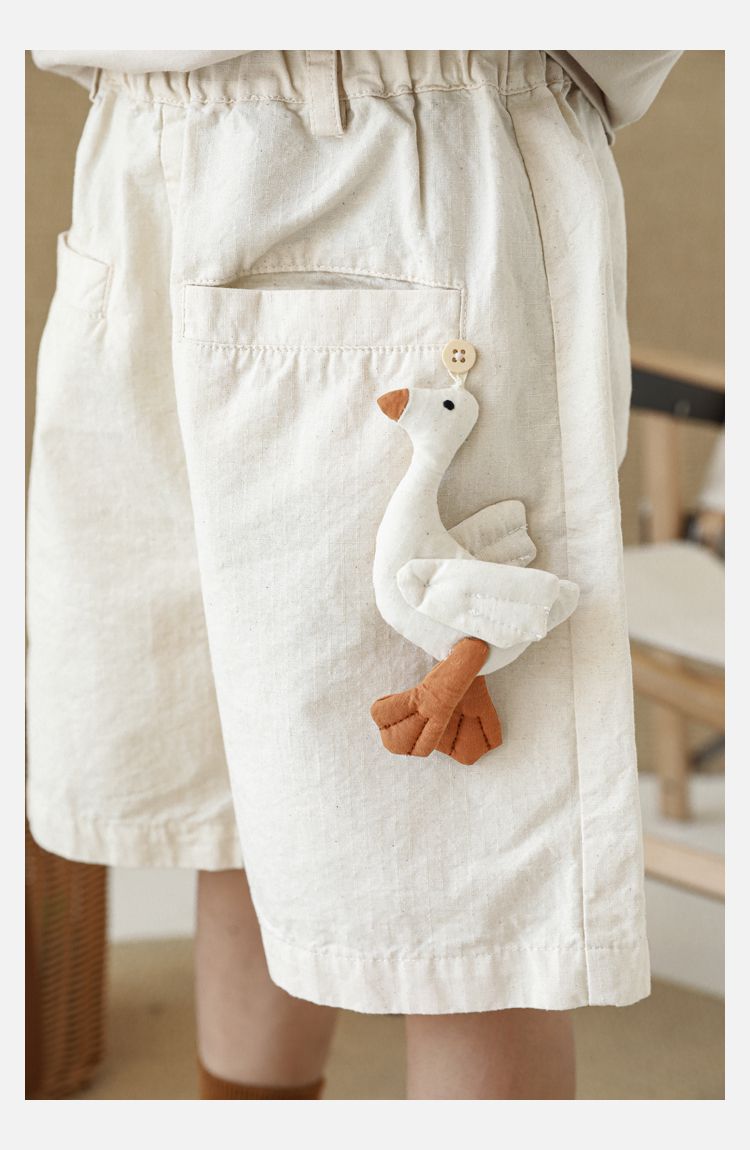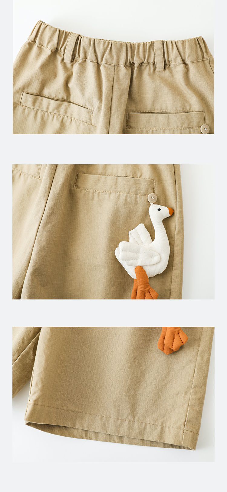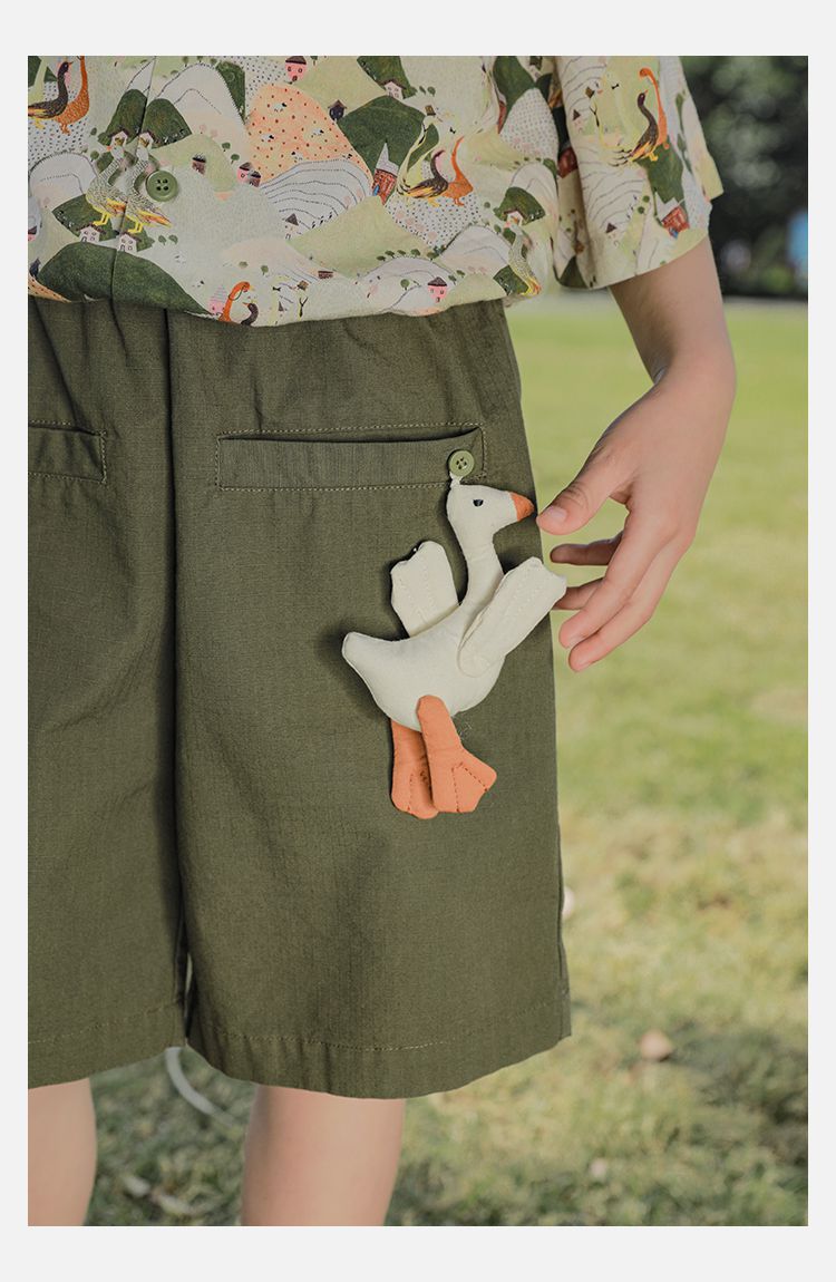 TONGMO - 腰鬆緊百搭五分褲-大鵝玩偶-卡其色