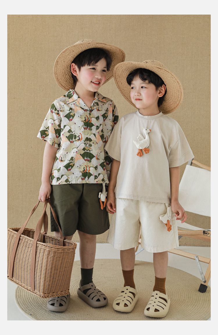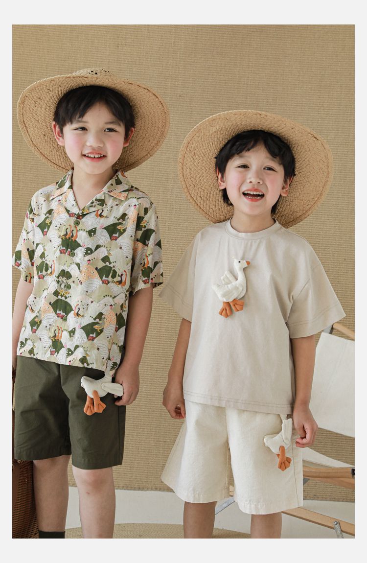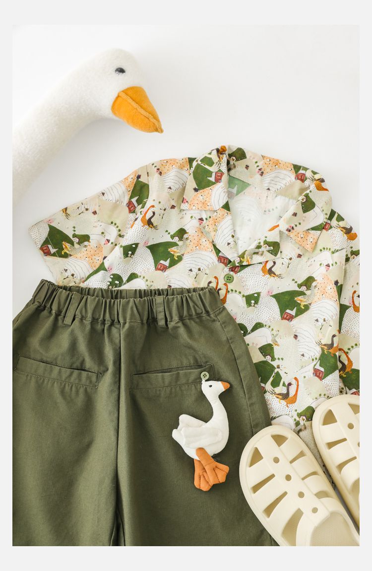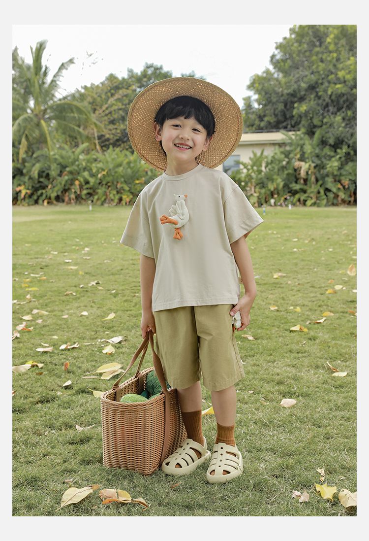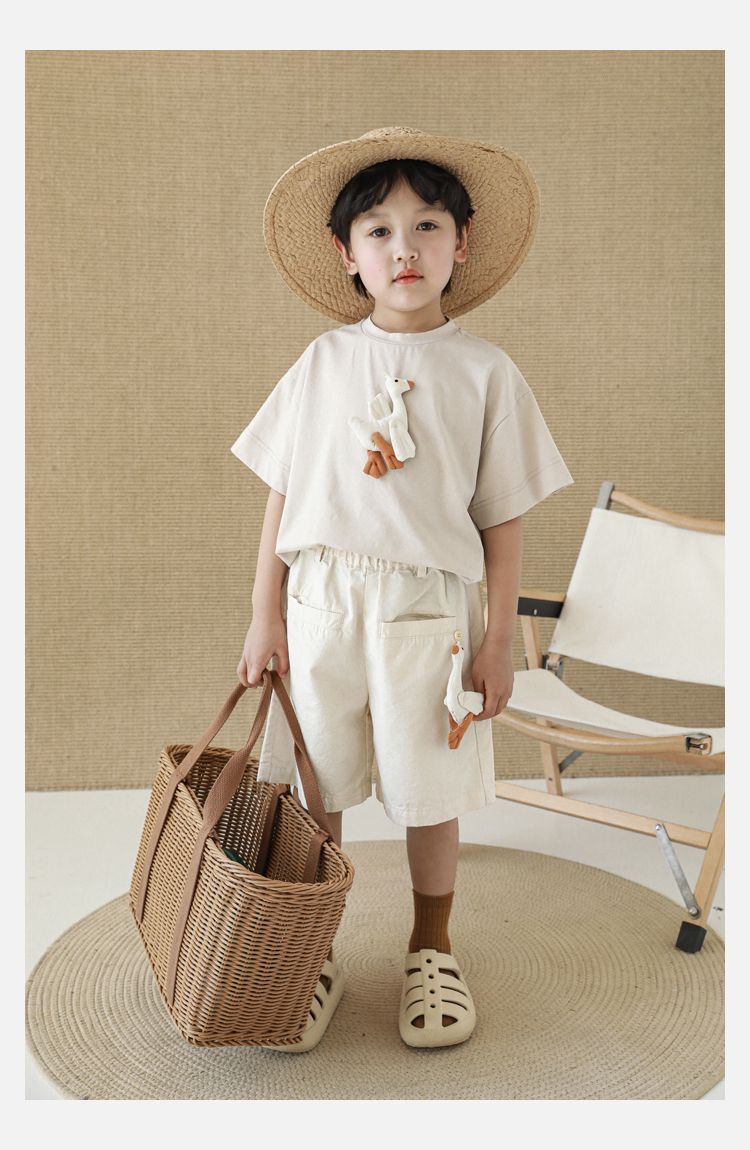 TONGMO - 腰鬆緊百搭五分褲-大鵝玩偶-卡其色