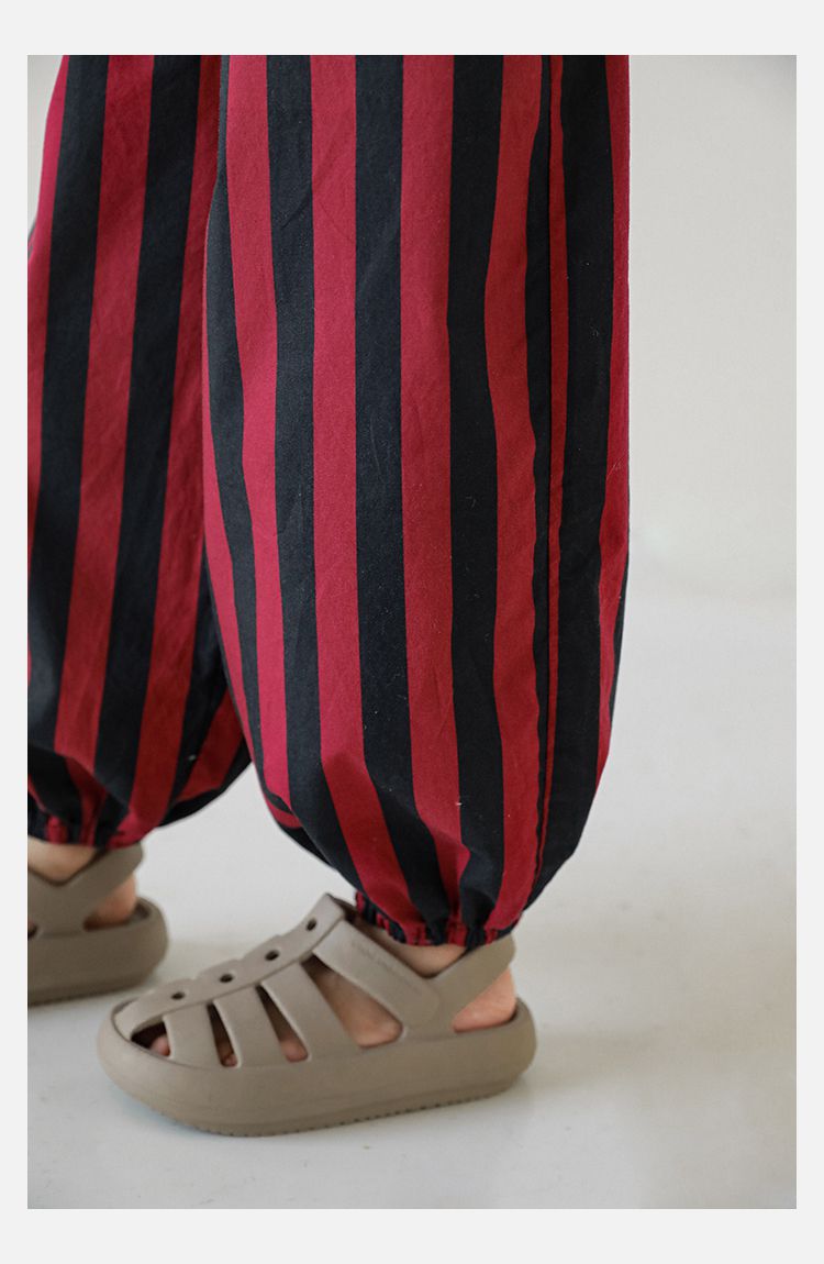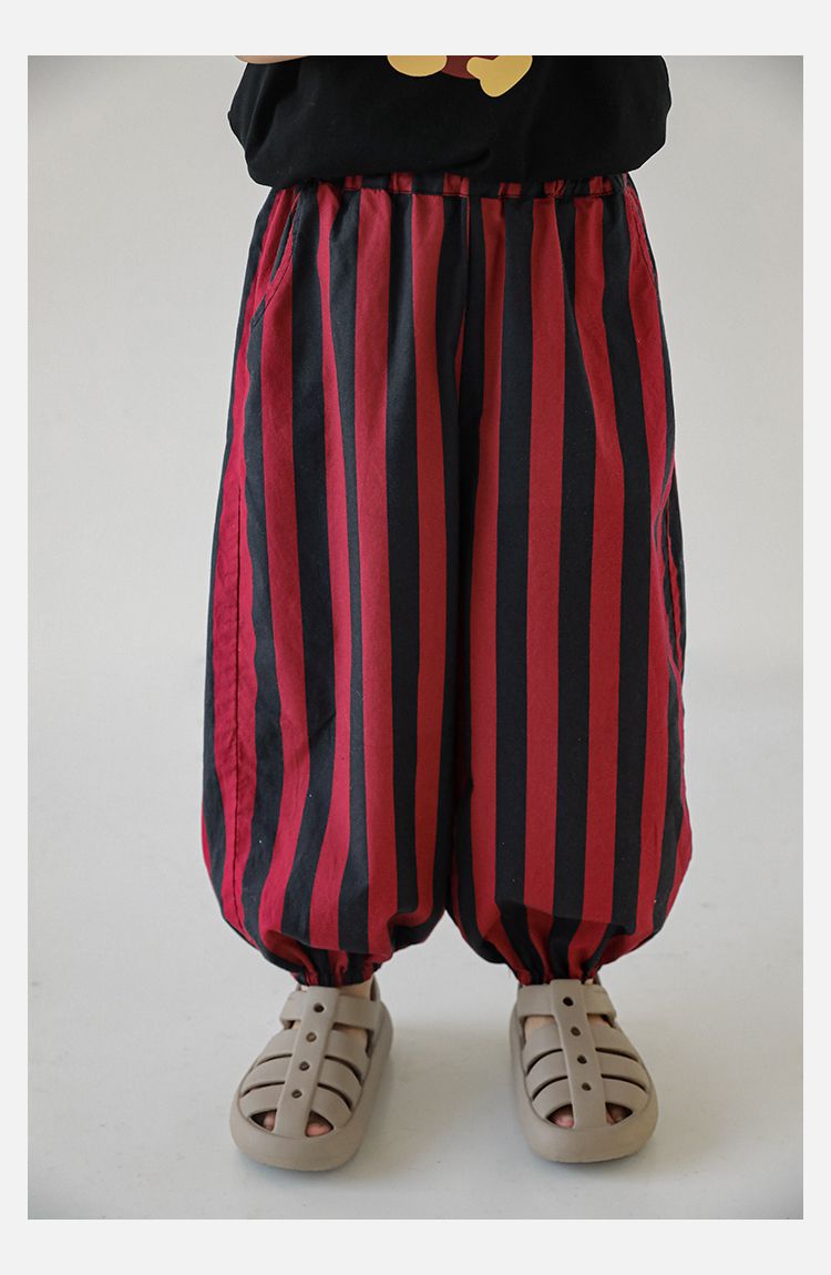 品名:撞色圓領短袖上衣+條紋長褲套裝