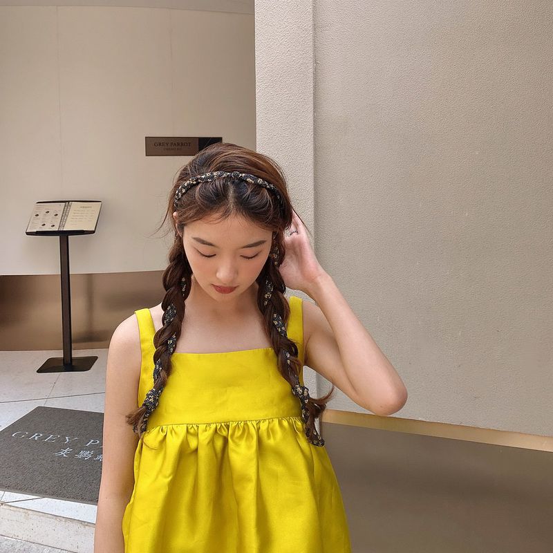 百搭造型綁帶髮箍-黑色黃花