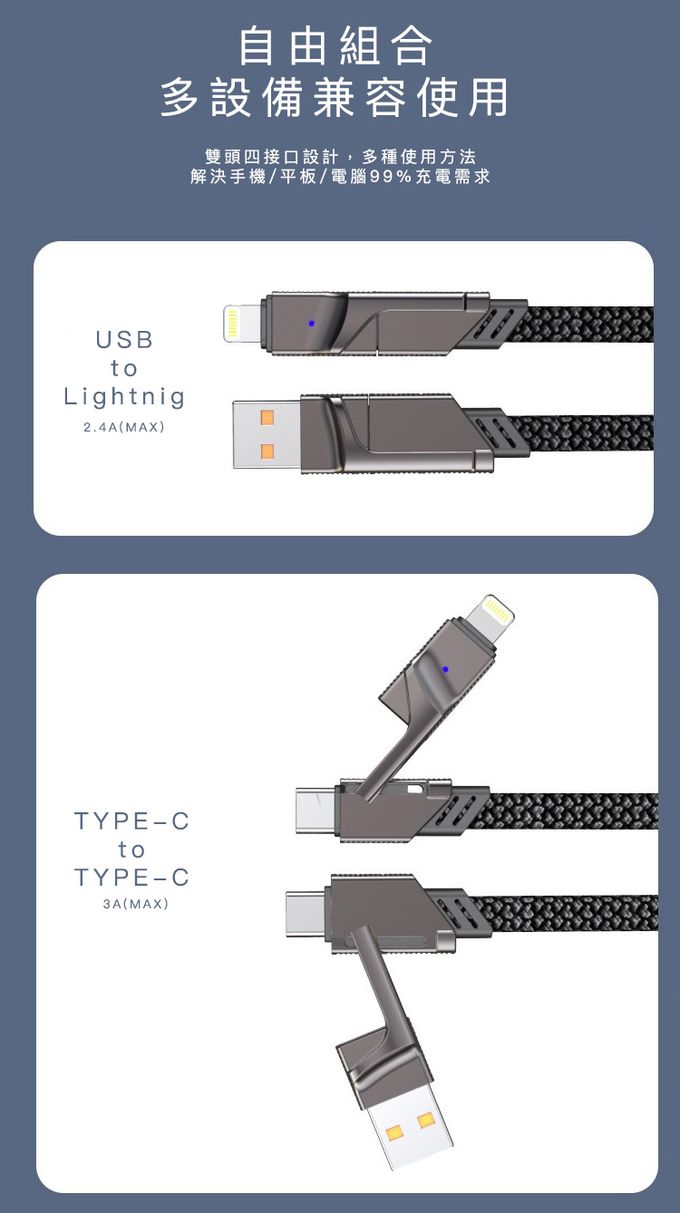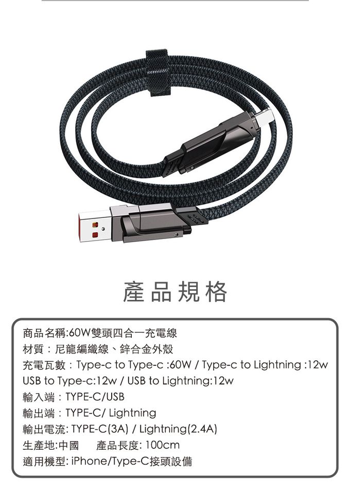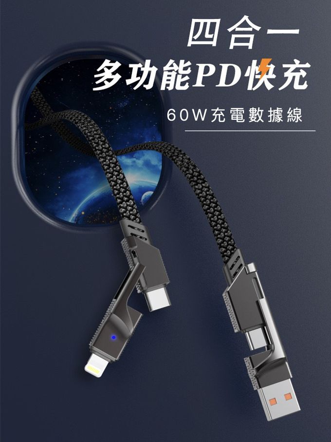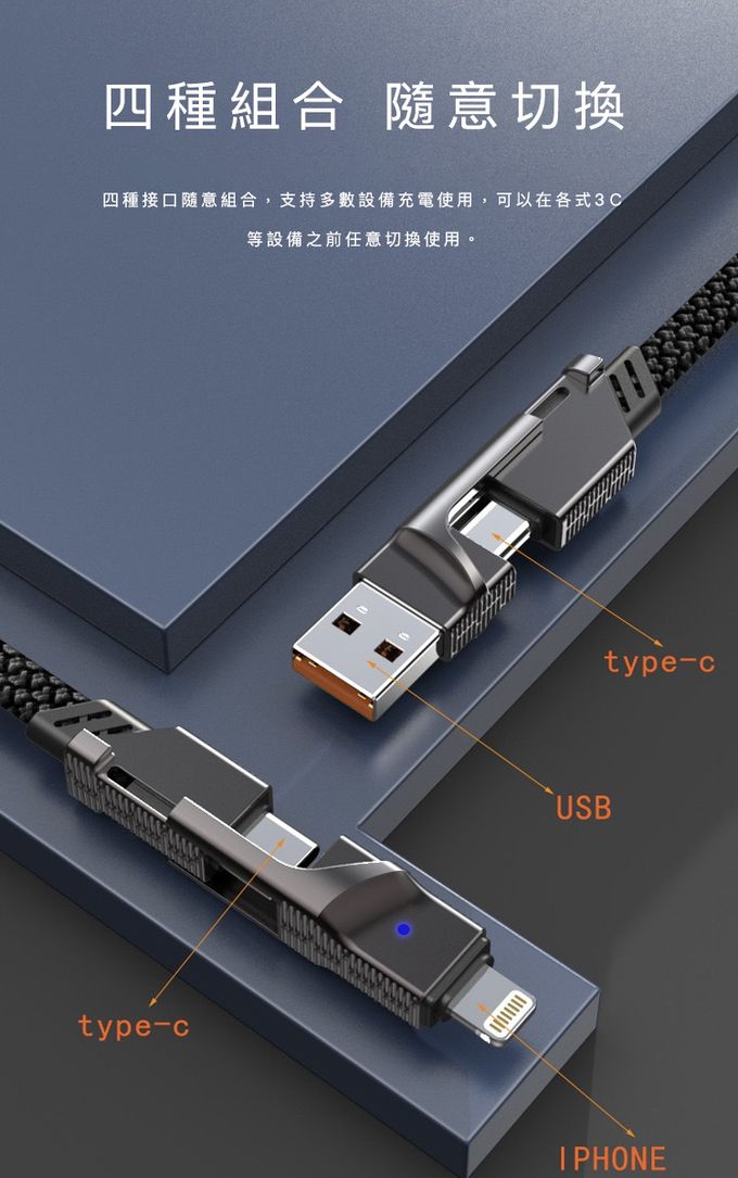 品名:四合一PD編織快速充電線(100cm)