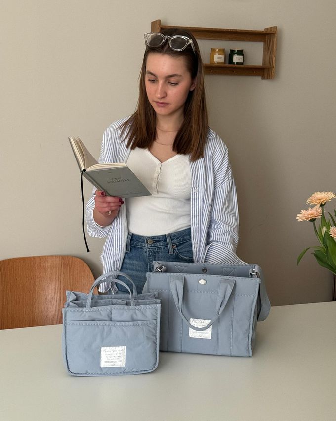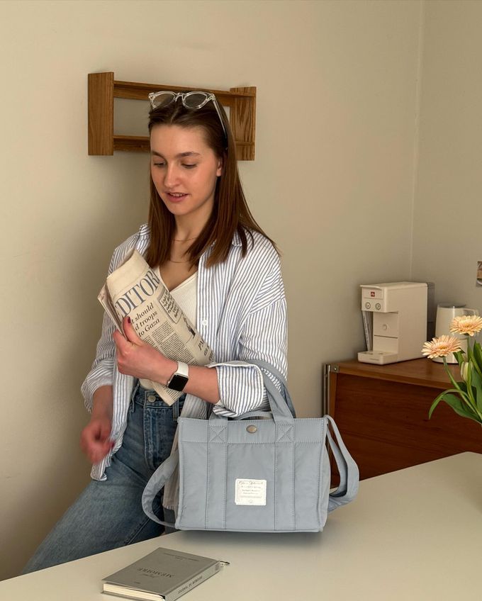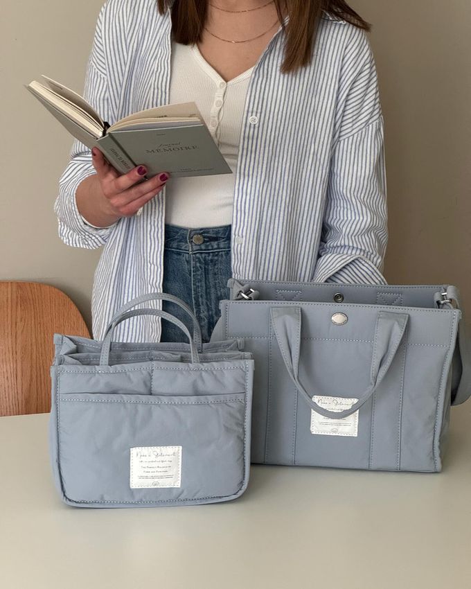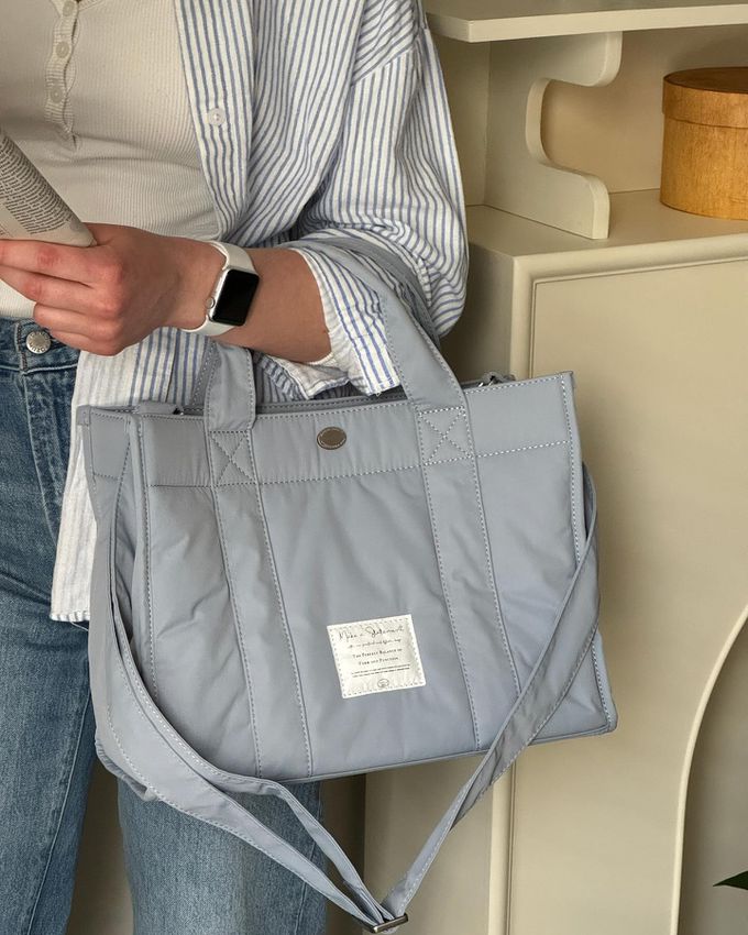 韓國 THEALLY - 小眾設計 尼龍手提/肩背兩用方形收納包-天藍 (大)