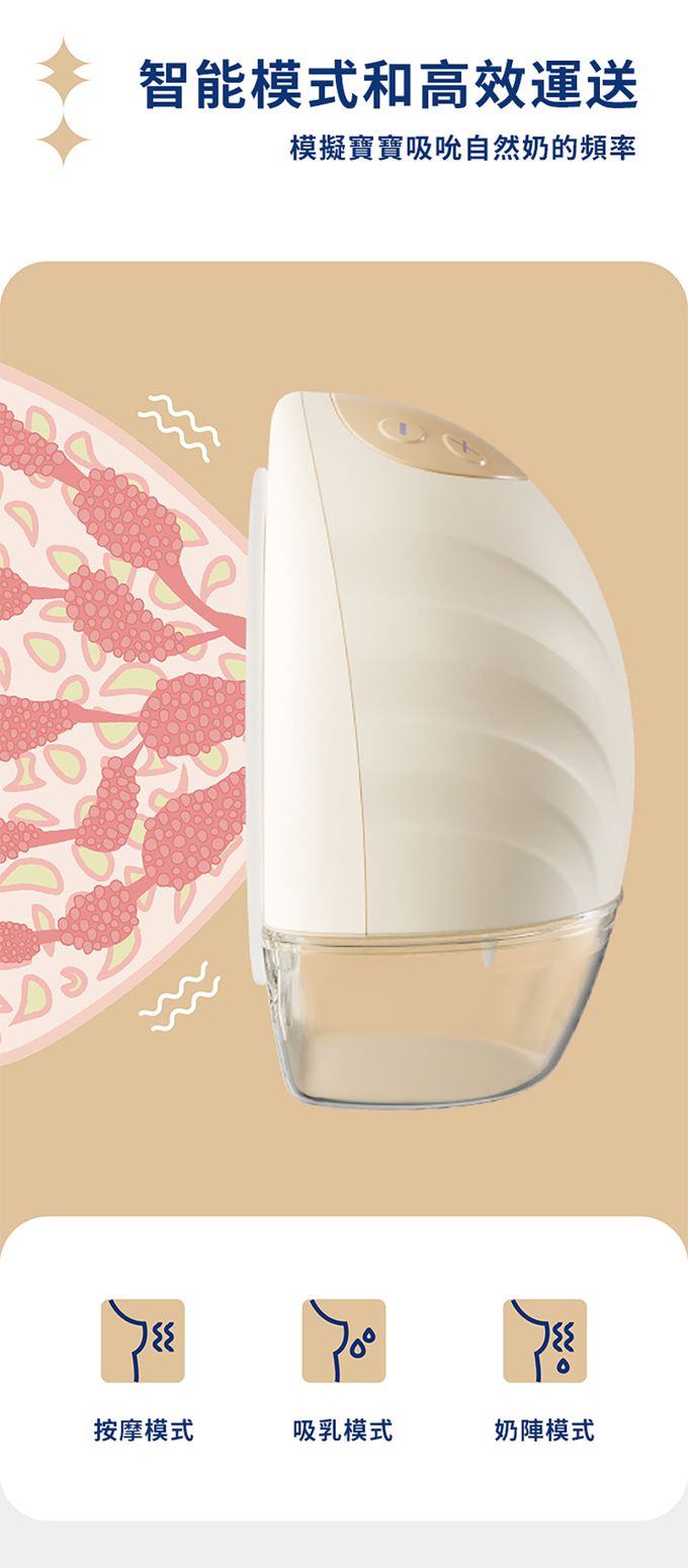 2.吸乳器啟動後,短按模式切換鍵可切換模式(吸乳模式、按摩模式、奶陣模式)。