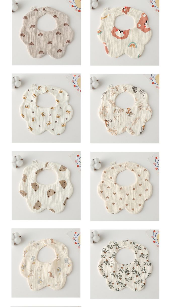 JoyNa - 4條入-紗布花瓣圍兜 吸水純棉口水巾-男寶寶-隨機4條入 (25*24.5cm)