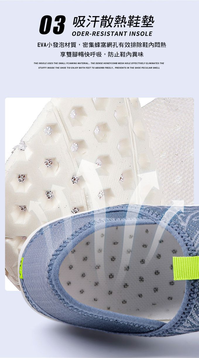 • 吸汗散熱鞋墊,讓腳不悶臭