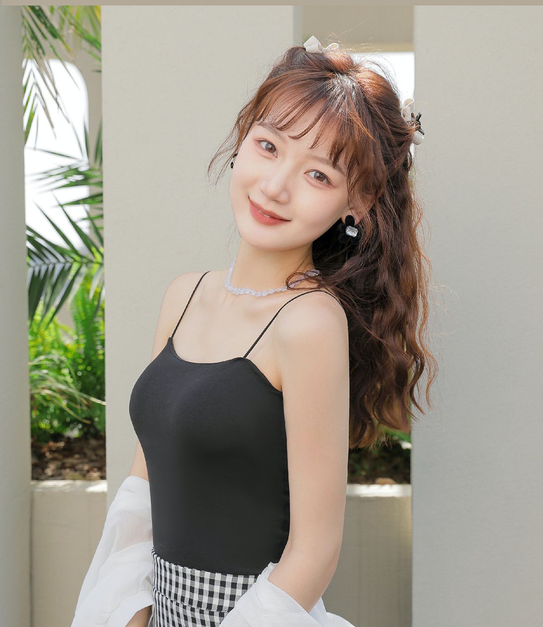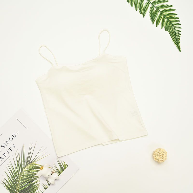 JS - 超細肩帶BRA TOP/附罩杯上衣-白色