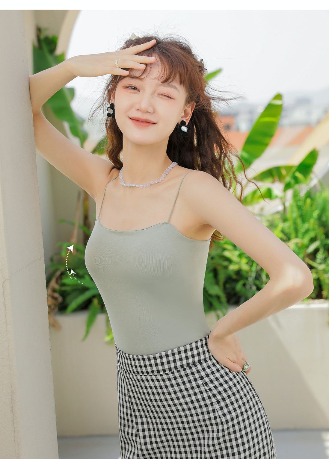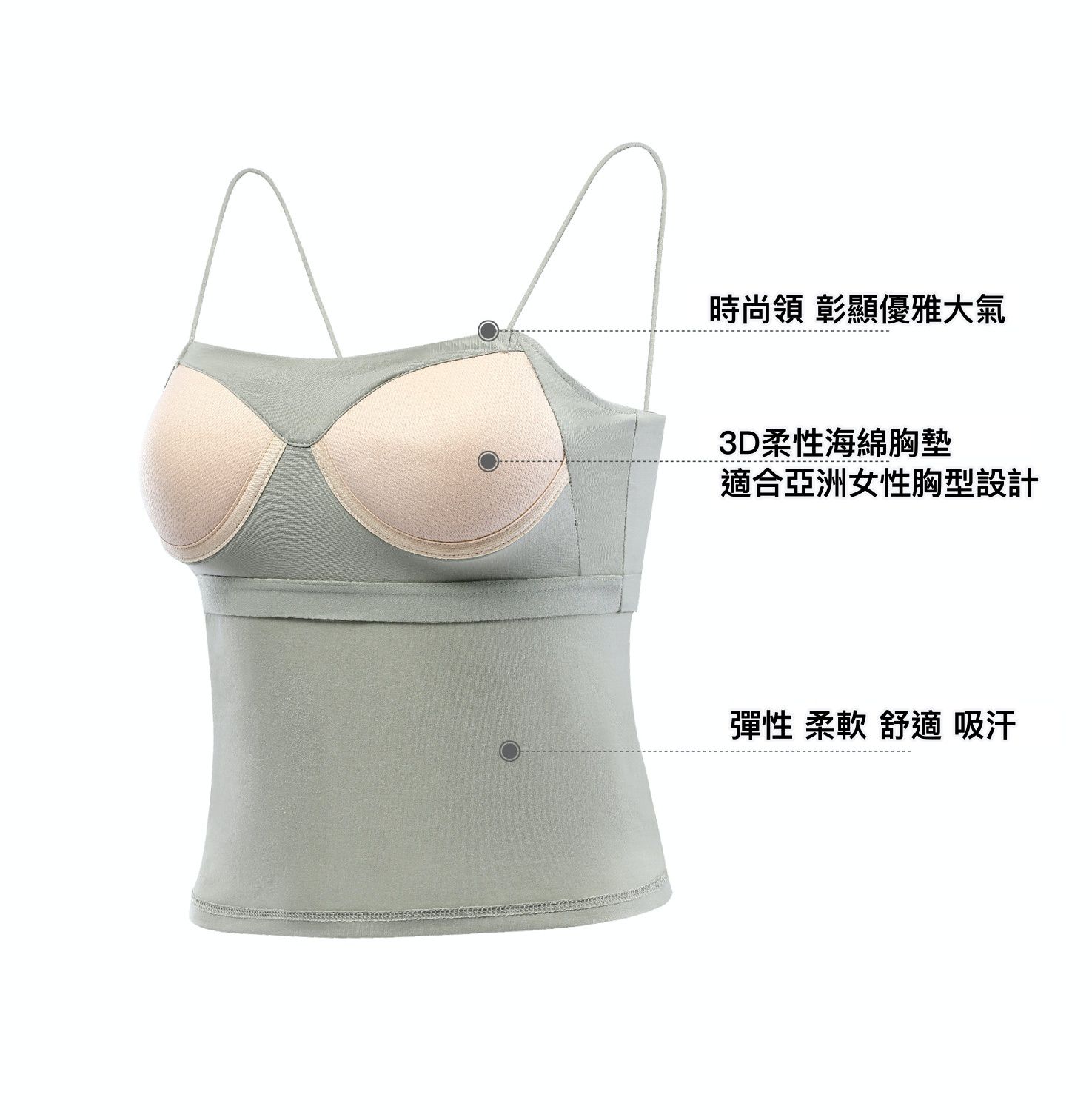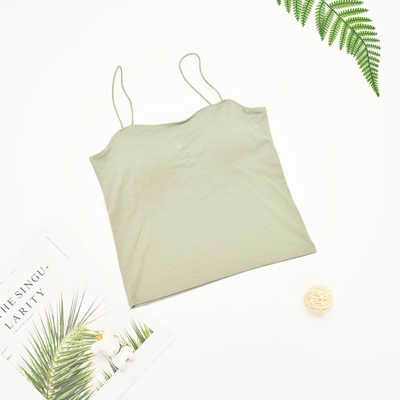 超細肩帶BRA TOP/附罩杯上衣-淺綠色