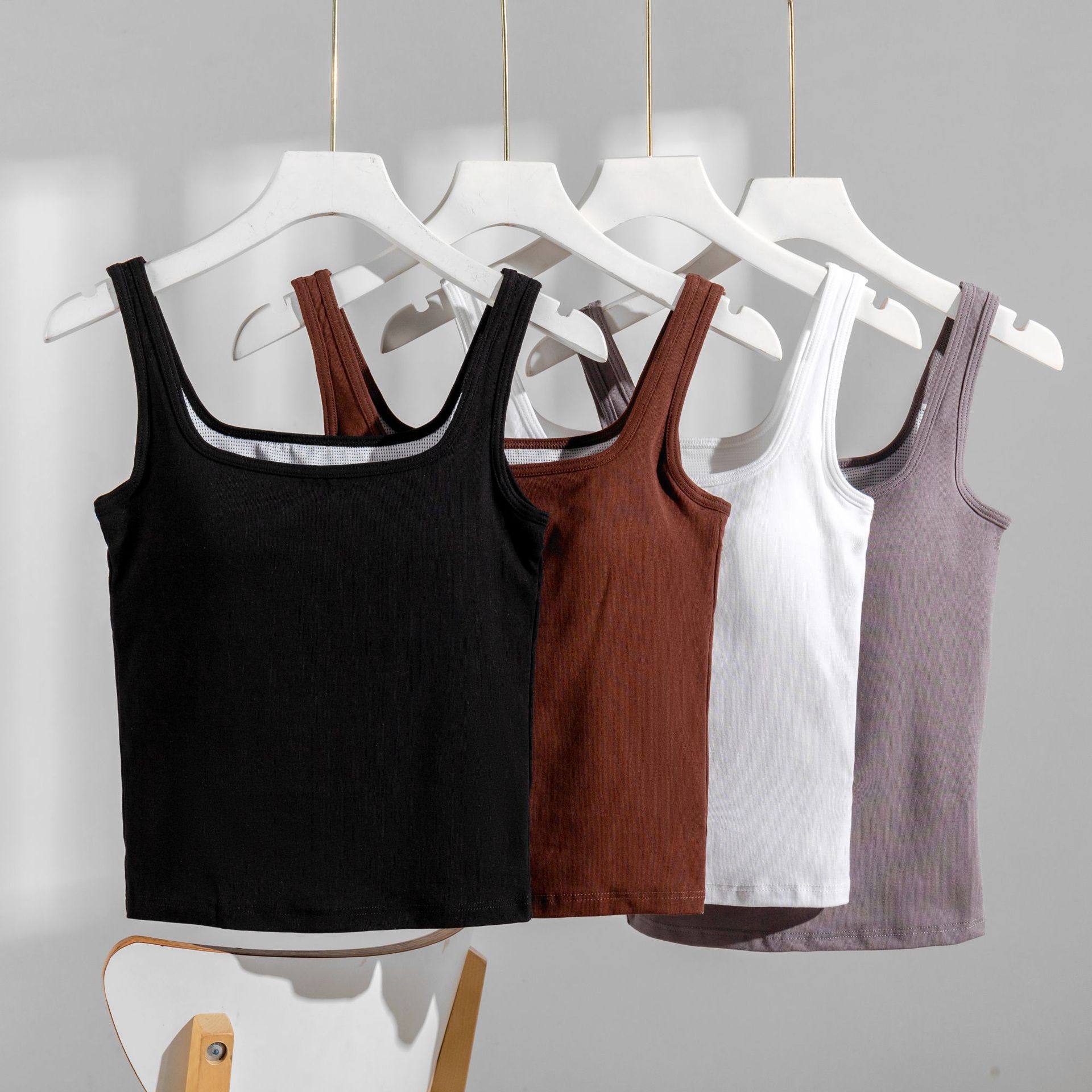 JS - 方領BRA TOP/附罩杯上衣-黑色