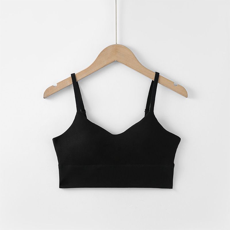 JS - V領短版BRA TOP/附罩杯上衣-黑色