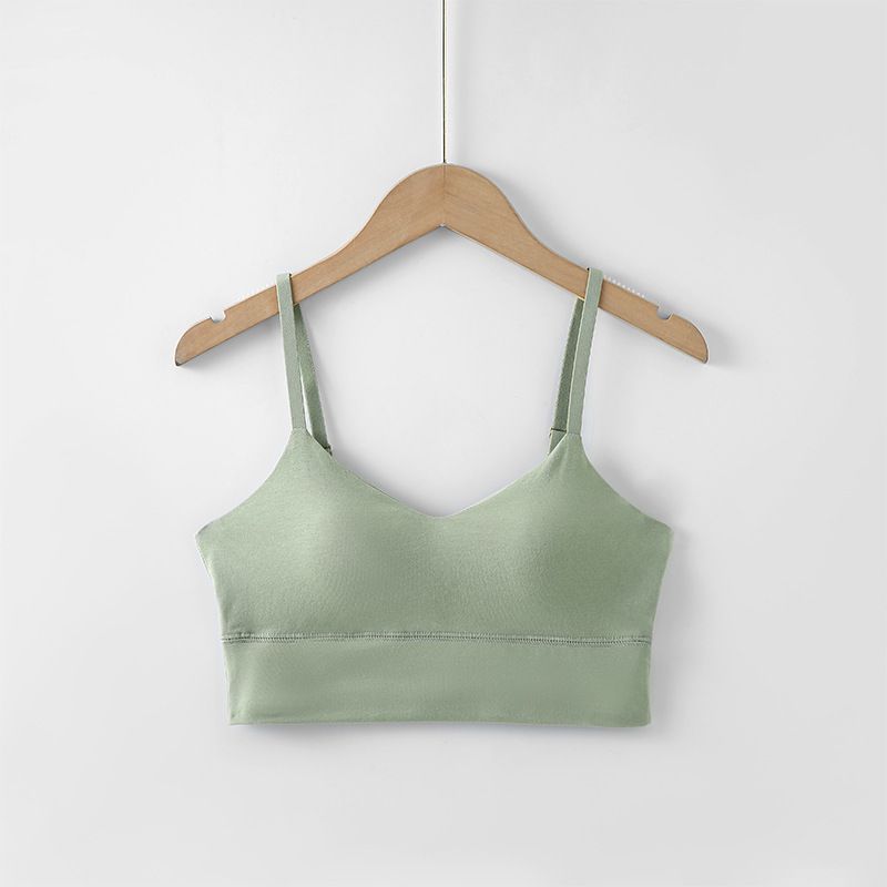 JS - V領短版BRA TOP/附罩杯上衣-綠色