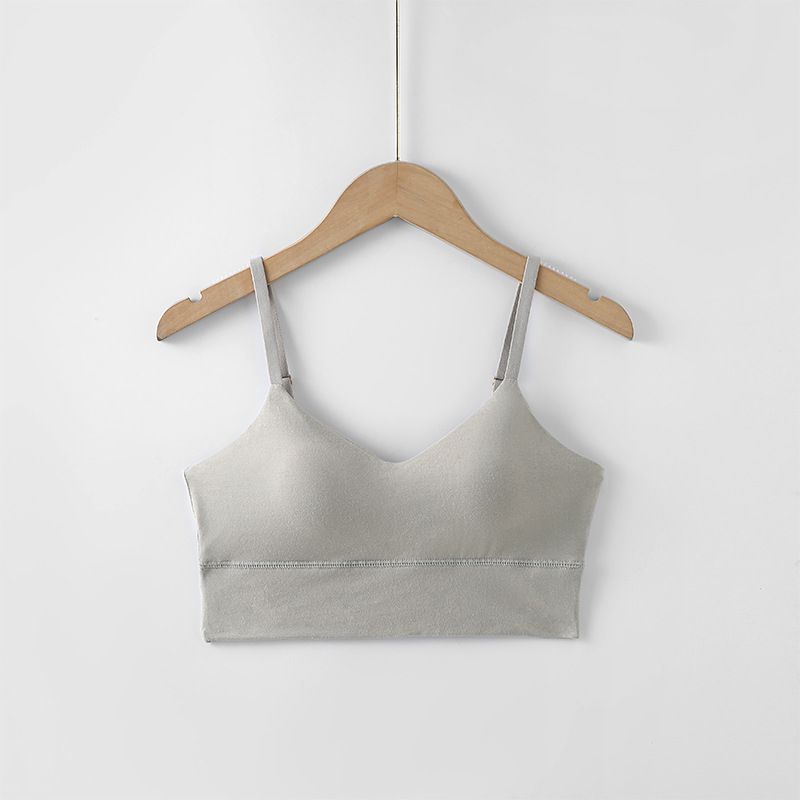 JS - V領短版BRA TOP/附罩杯上衣-灰色