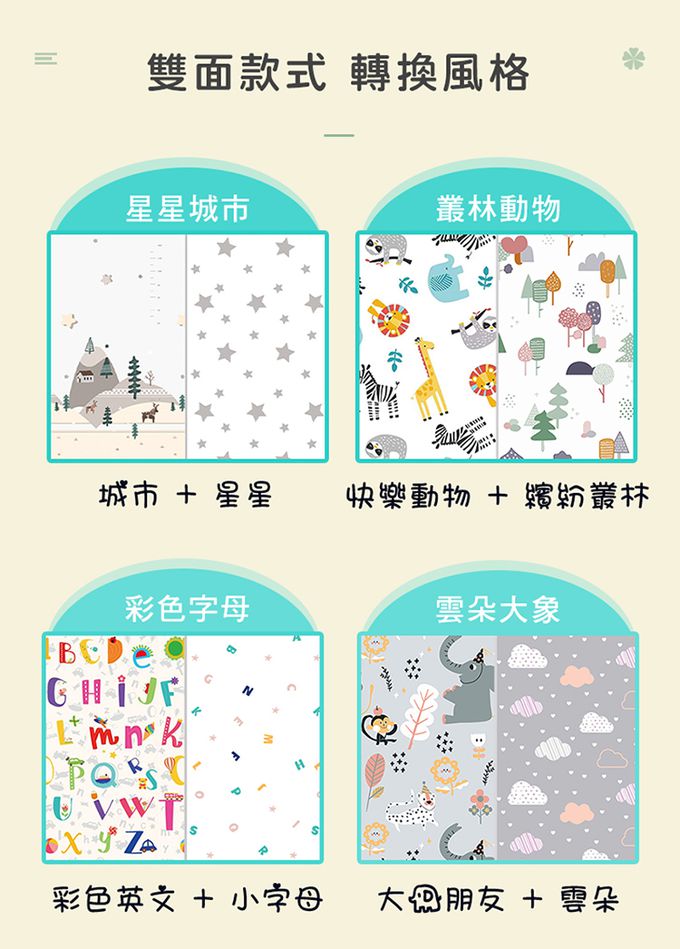 國民地墊 XPE 2CM 加厚雙面摺疊地墊 - 雲朵大象 D4-(雙面花色,共一片地墊)