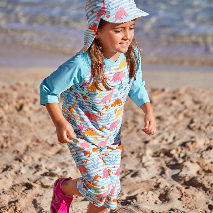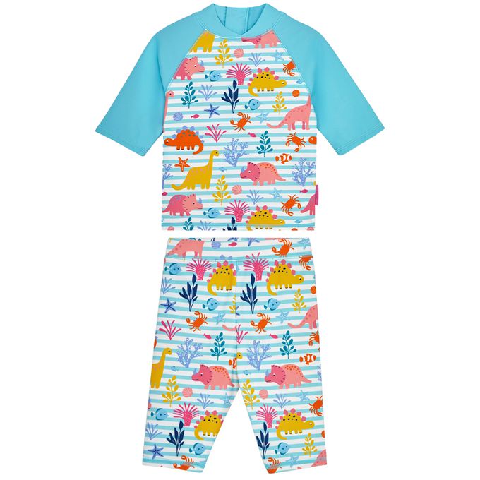 英國 JoJo Maman BeBe - 嬰幼兒/兒童兩件式防曬泳裝-恐龍玩水