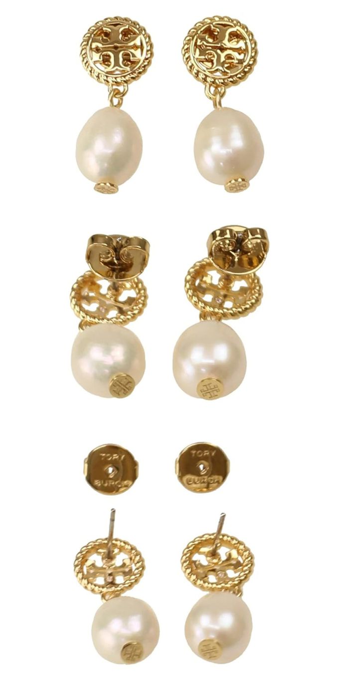 珍珠造型雙T-LOGO耳環 (玫瑰金)