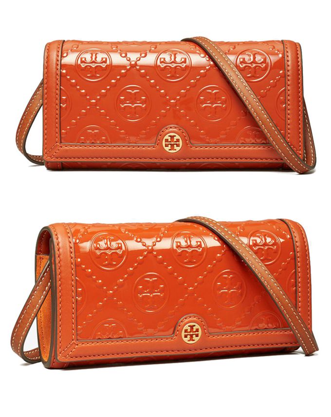 滿版LOGO翻蓋皮革斜背包 (愛瑪仕橘)