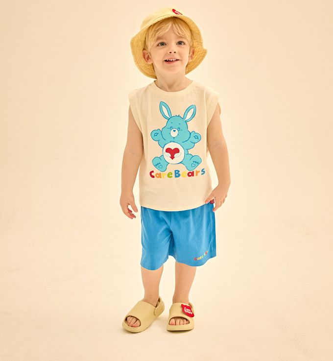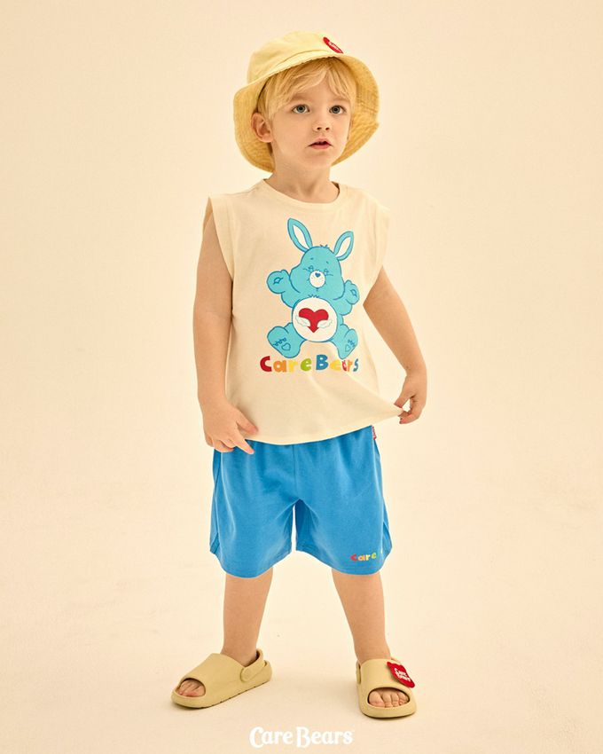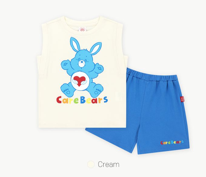 韓國 Care Bears - 聯名款兔耳熊熊無袖套裝-米X寶藍