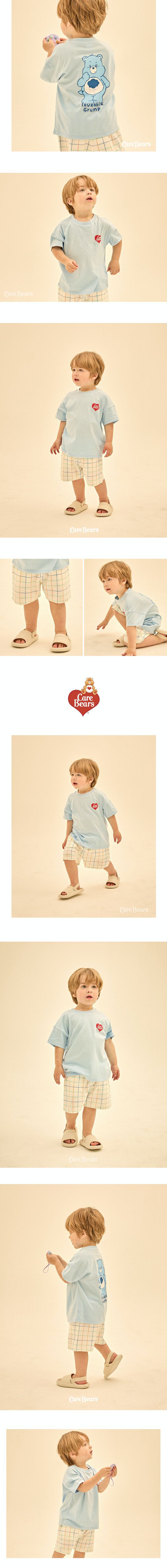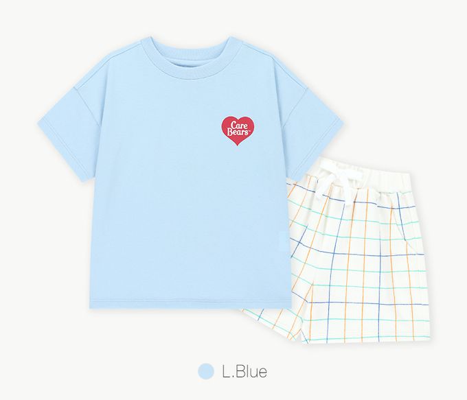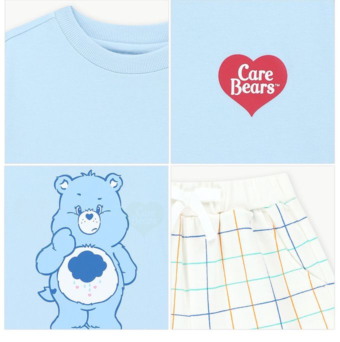 韓國 Care Bears - 聯名款憂鬱熊色線紋短褲套裝-天藍X白